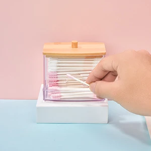 Cotton Swab Holder Clear Plastic Dispenser with Bamboo Lid