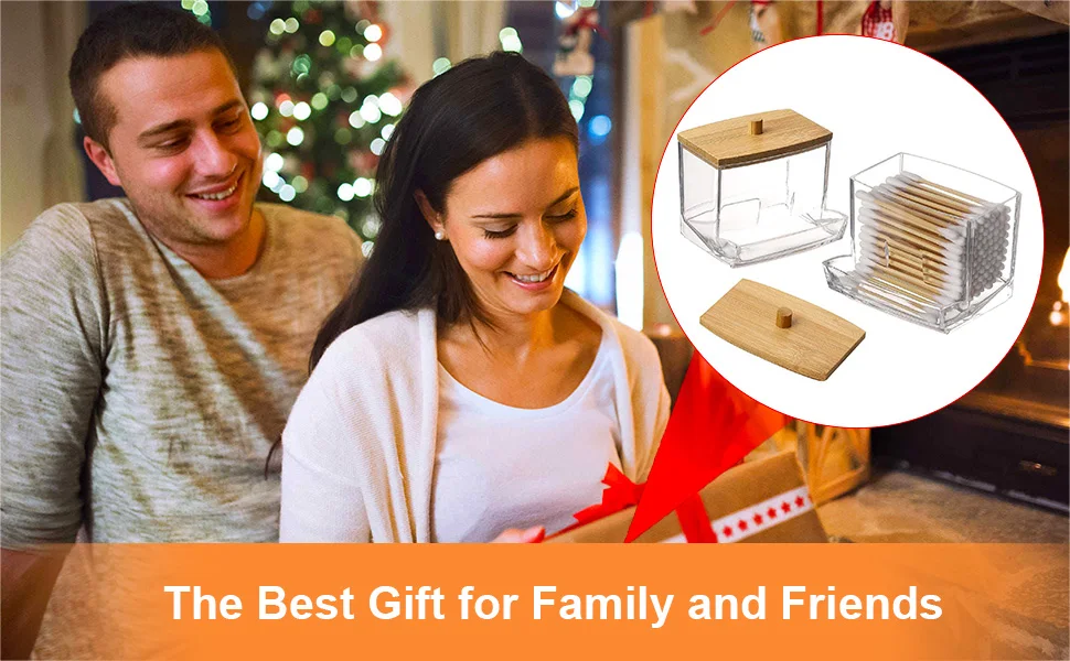 Remove the bamboo lid and fill the container with your choice of cotton swabs, cotton balls, or other small items. Place the lid back on to keep contents secure and protected from dust and moisture.
