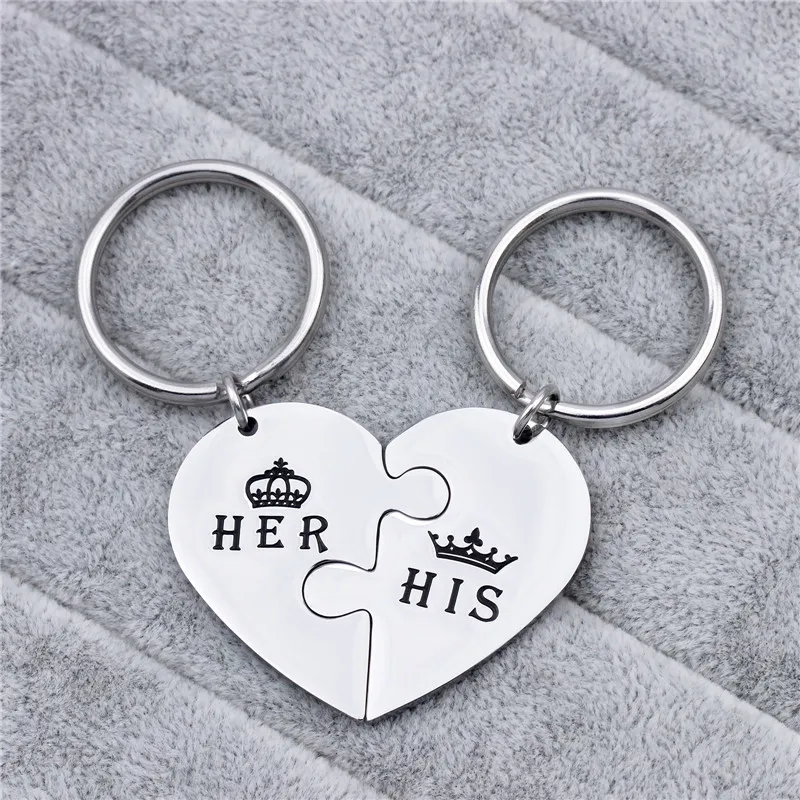 - The two keychains feature puzzle pieces that fit together perfectly, forming a heart when combined, symbolizing your unity.