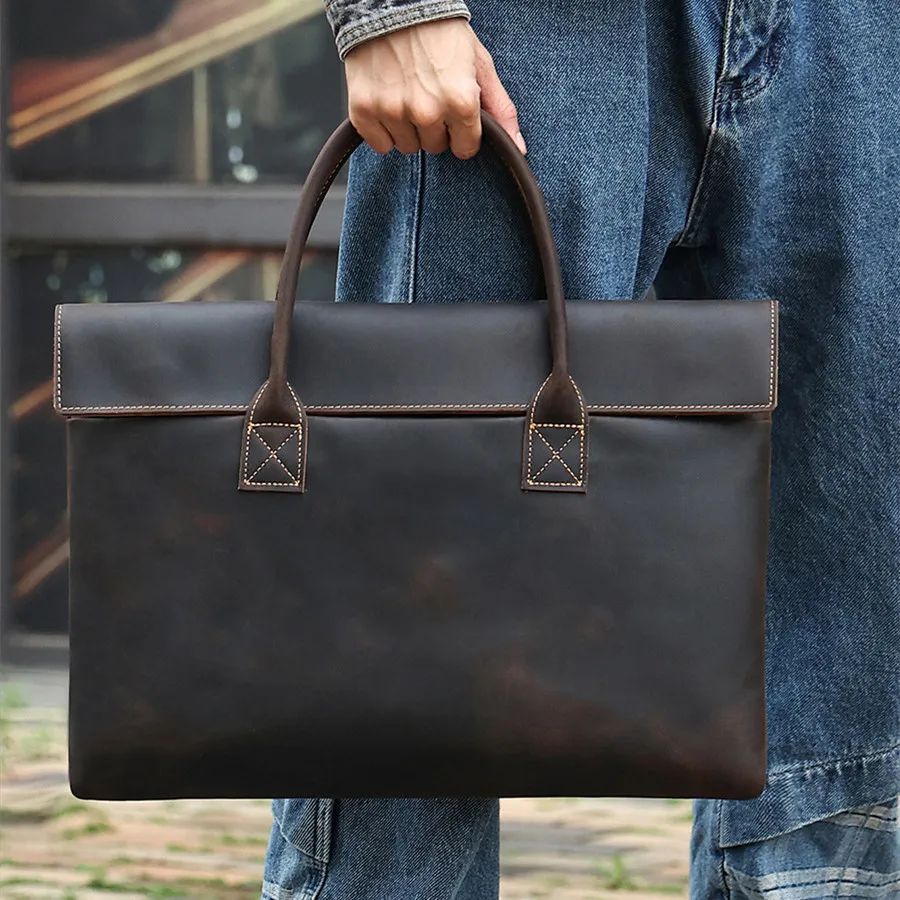 Crazy Horse Leather Men's Handbag Thin And Portable