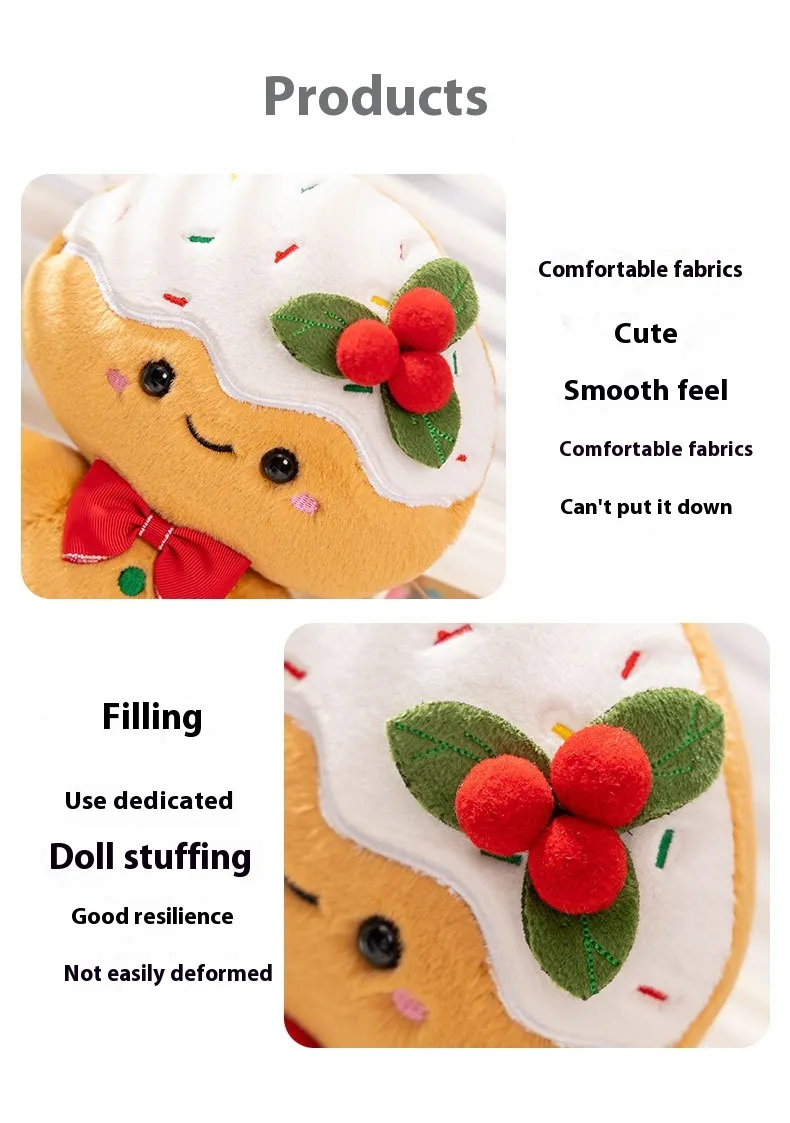 The Cream Gingerbread Man Pillow Plush Toy features an adorable gingerbread man design, complete with decorative frosting accents, a smiling face, and button details. The charming design adds a festive, cozy touch to any space, making it perfect for holiday decor, Christmas, or simply as a fun, cozy addition to your home. The friendly expression and playful design make it an endearing piece that will bring smiles to anyone who sees it.