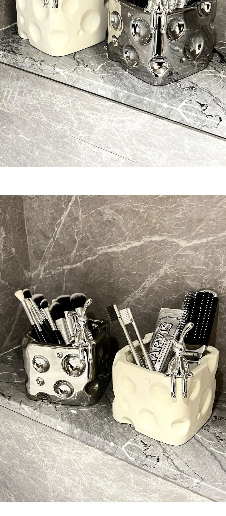 Cream Style Ceramic Bathroom Light Luxury Storage Box