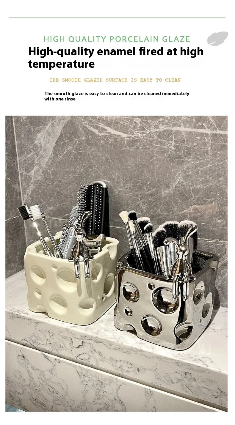 The Cream Style Ceramic Bathroom Light Luxury Storage Box is designed to maximize storage while minimizing space. Its compact size allows it to fit seamlessly into small bathrooms or on crowded countertops without taking up too much room. Despite its size, it offers ample storage for your daily essentials, making it an ideal choice for homes with limited space.