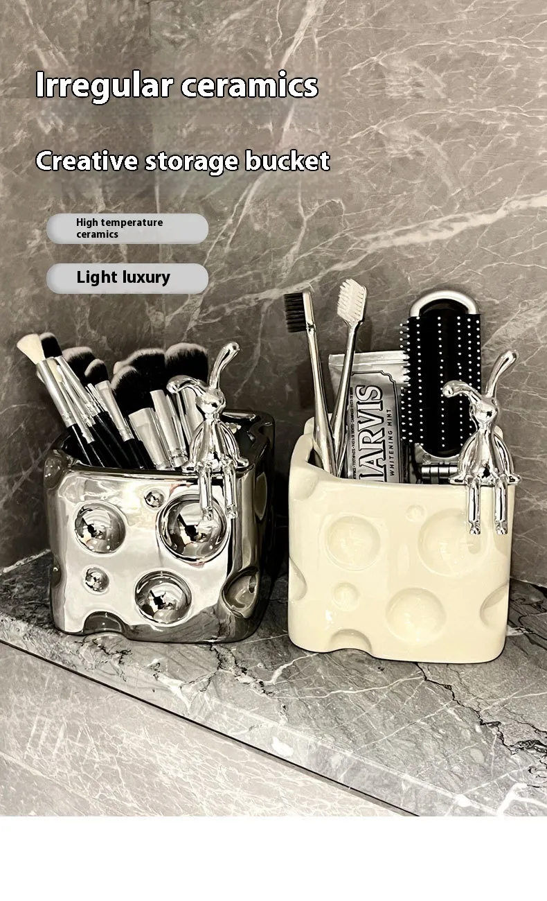 Key Features of the Cream Style Ceramic Bathroom Light Luxury Storage Box