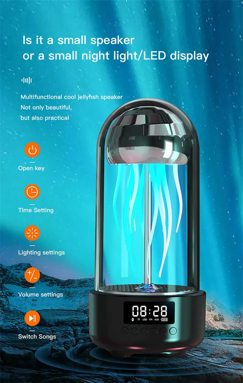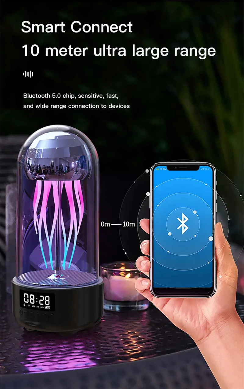 Creative 3-in-1 Colorful Jellyfish Lamp with Clock – Luminous Portable Stereo Breathing Light and Bluetooth Speaker