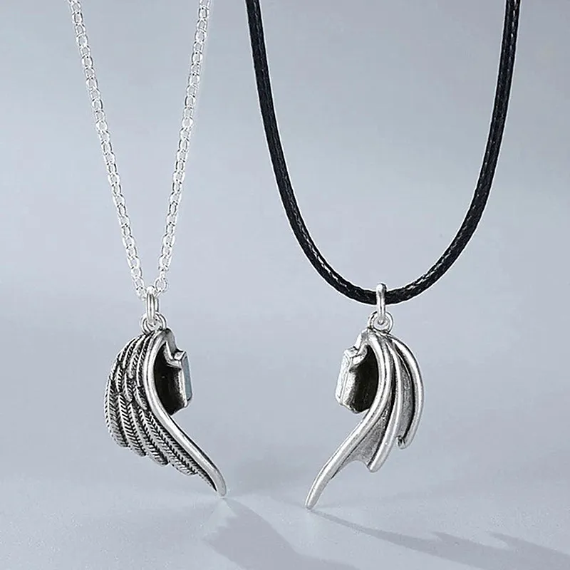 Creative Angel And Demon Couple Retro Necklace Leather Cord Charm Magnet