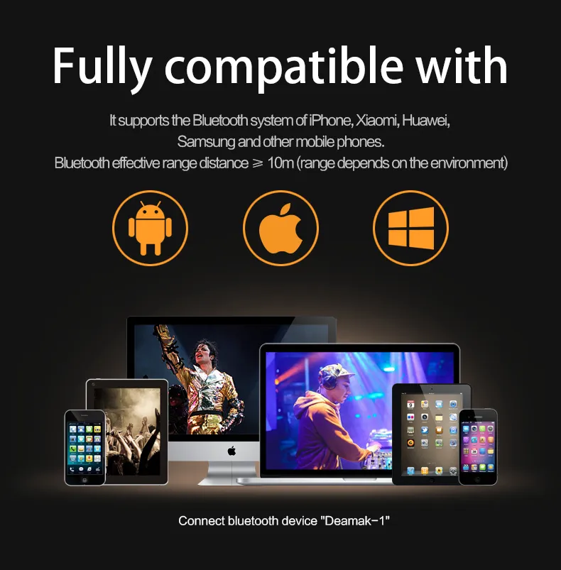 (8) Bluetooth version: 4.2 Receiving distance ≥ 10m