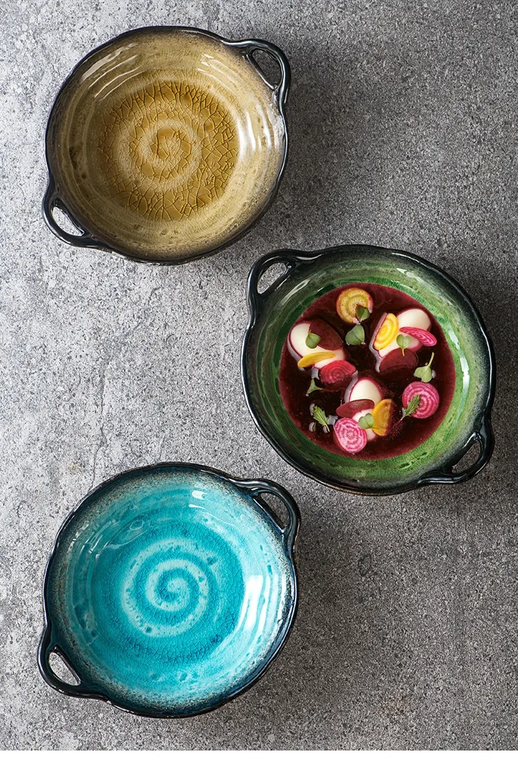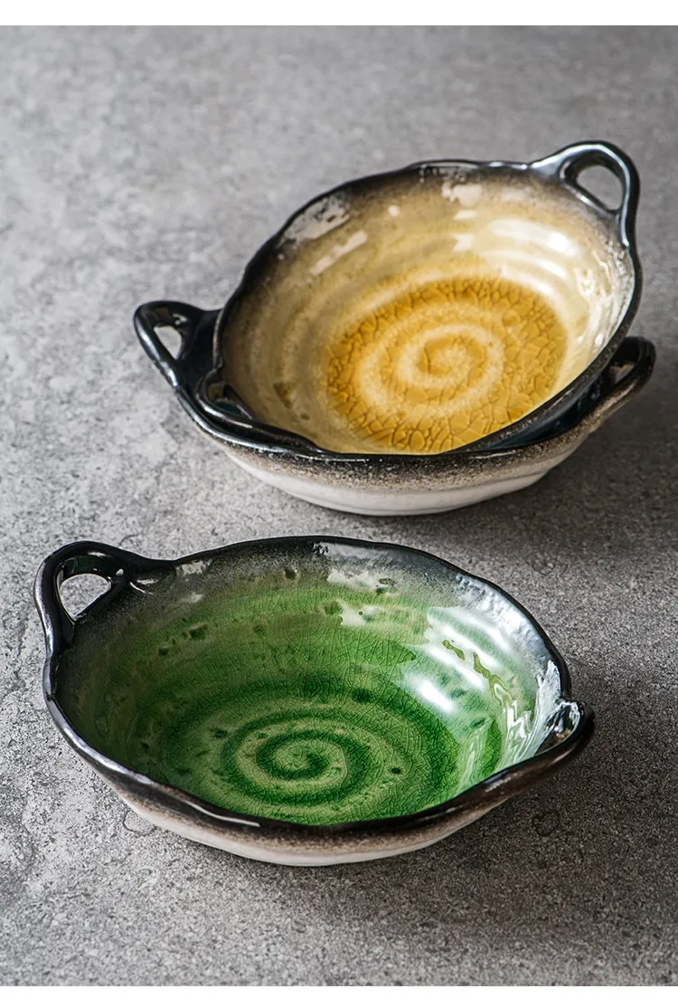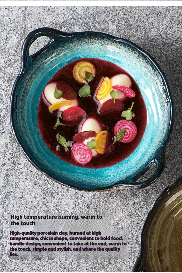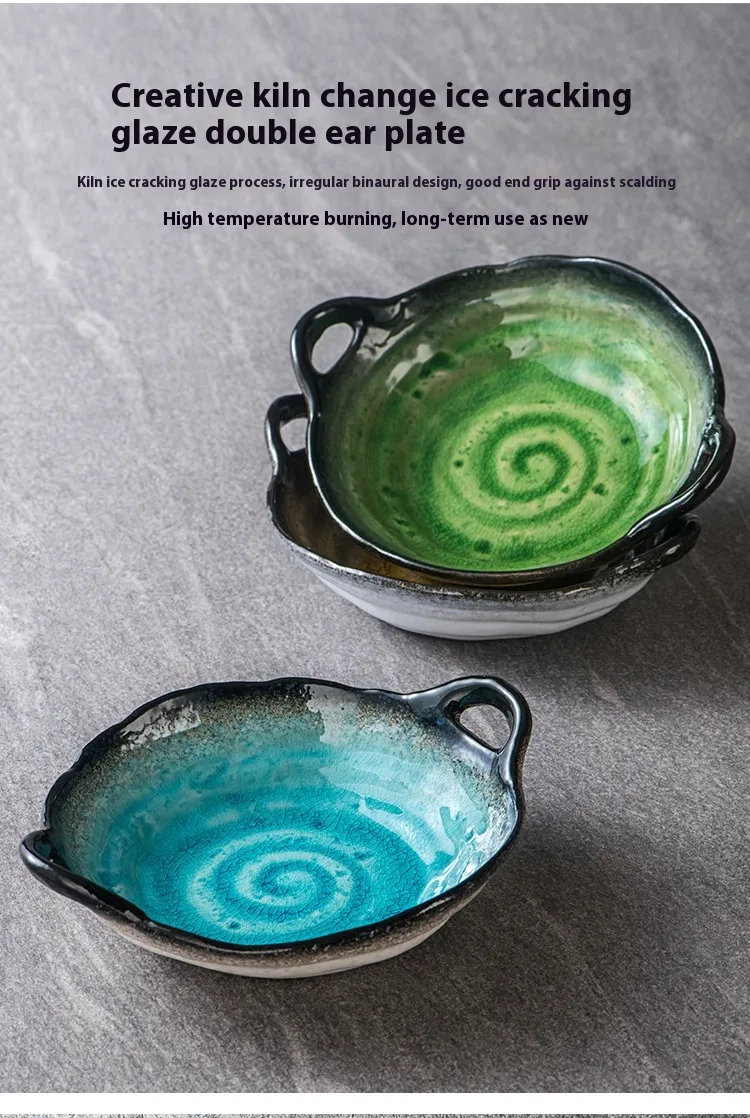 Creative Ceramic Crackle Glaze Binaural Good-looking Household Dinner Plate