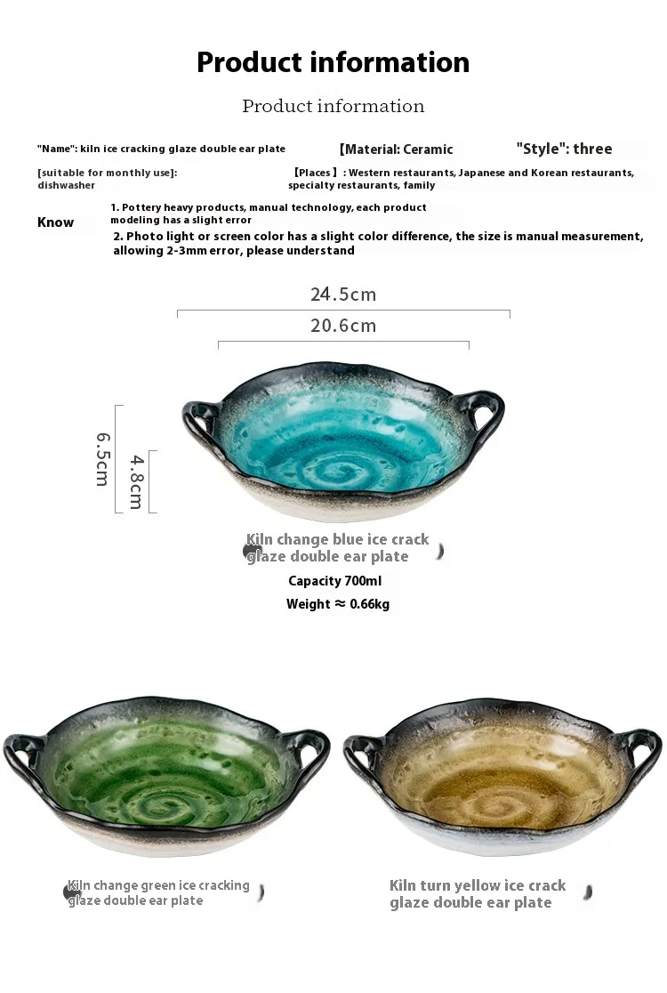 Color: 24.5CM double handle disk (yellow ice crack),24.5CM double handle disk (blue ice crack),24.5CM double handle disk (green ice crack)
