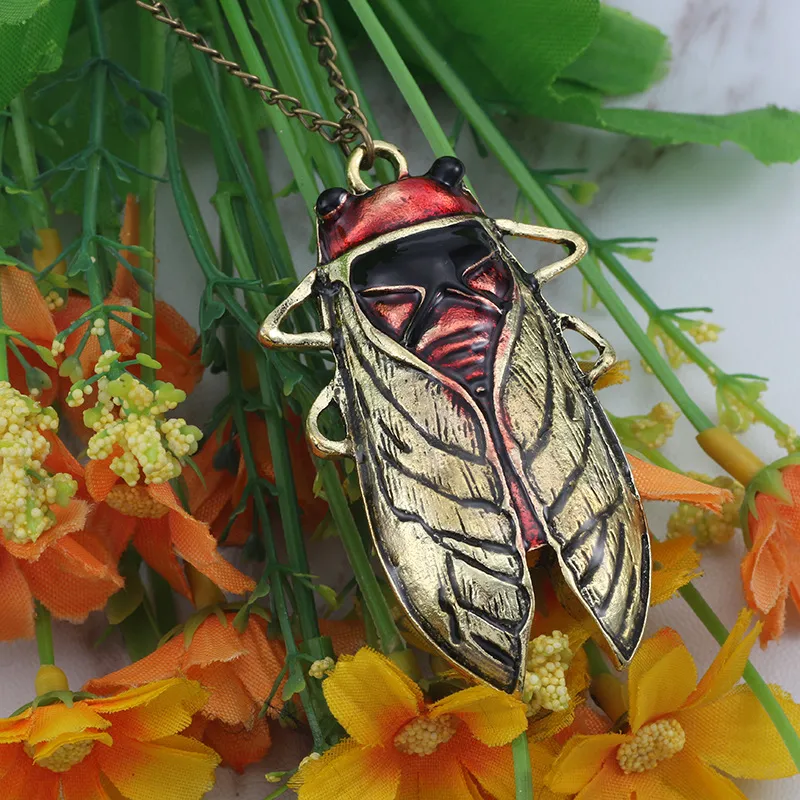 Creative Cute Alloy Dripping Oil Animal Cicada Necklace