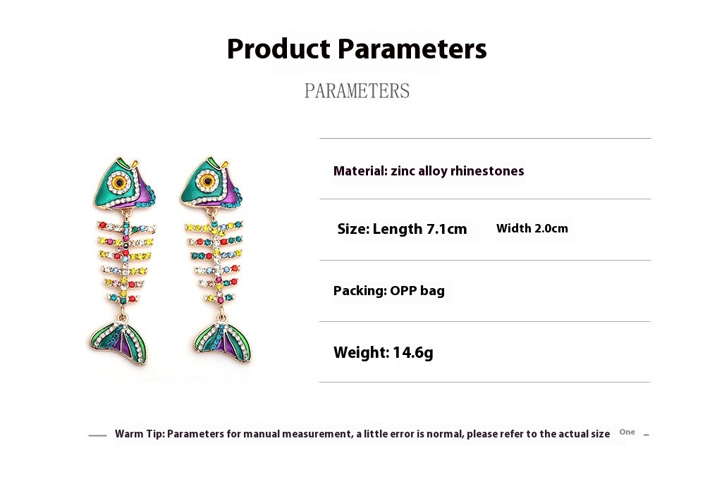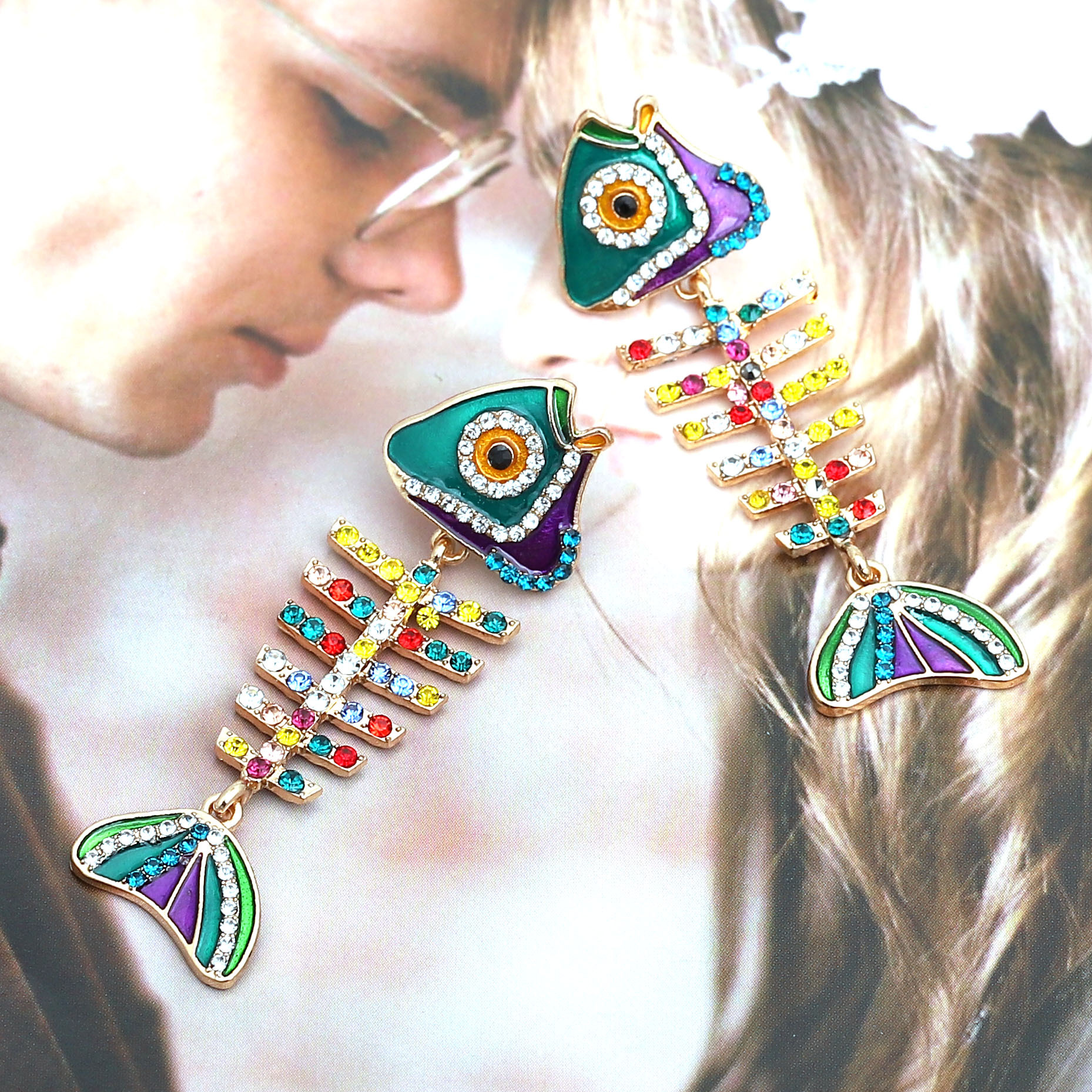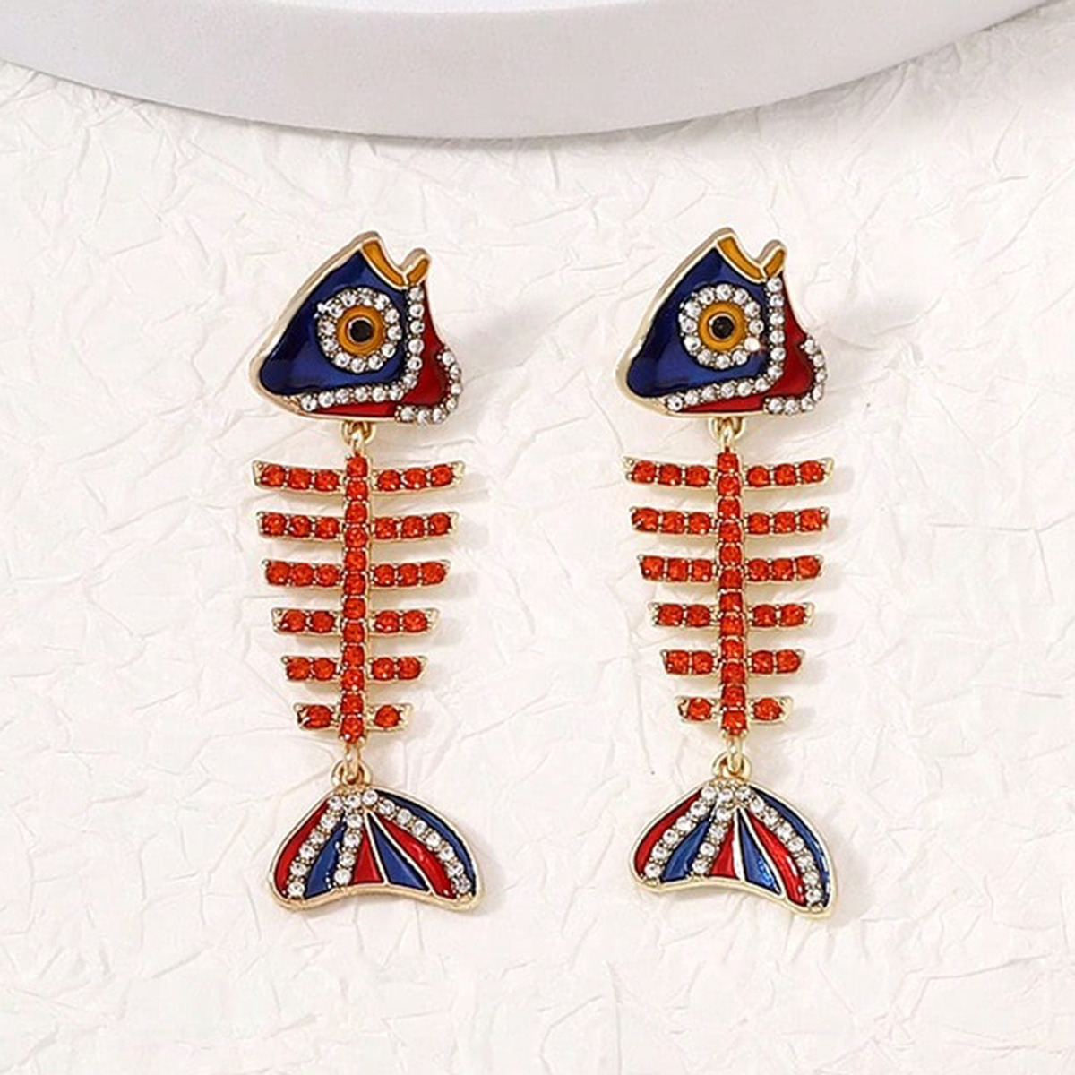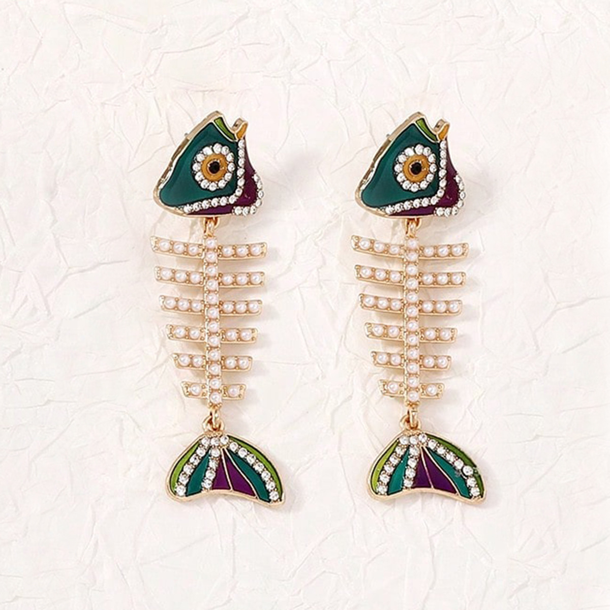 Creative Fashion Fish Alloy Diamond Female Earrings Metal Fishbone Eardrops European And American