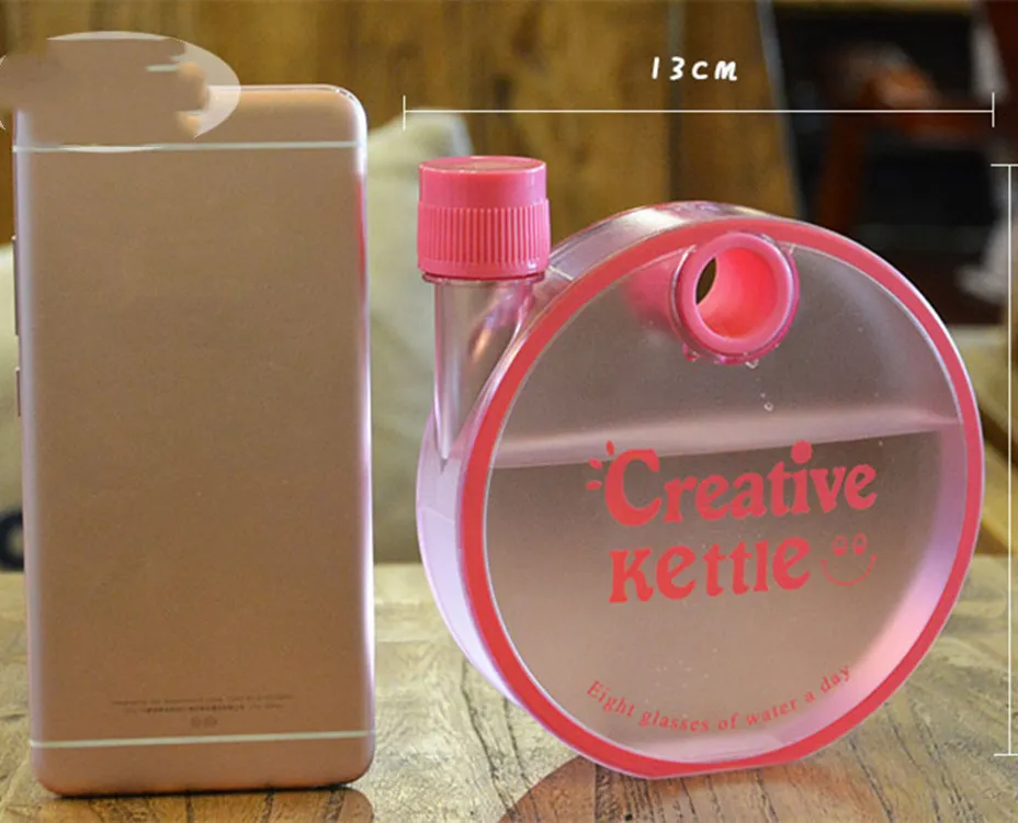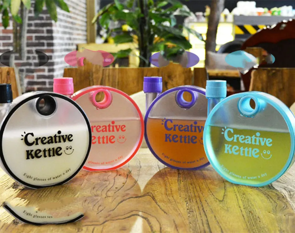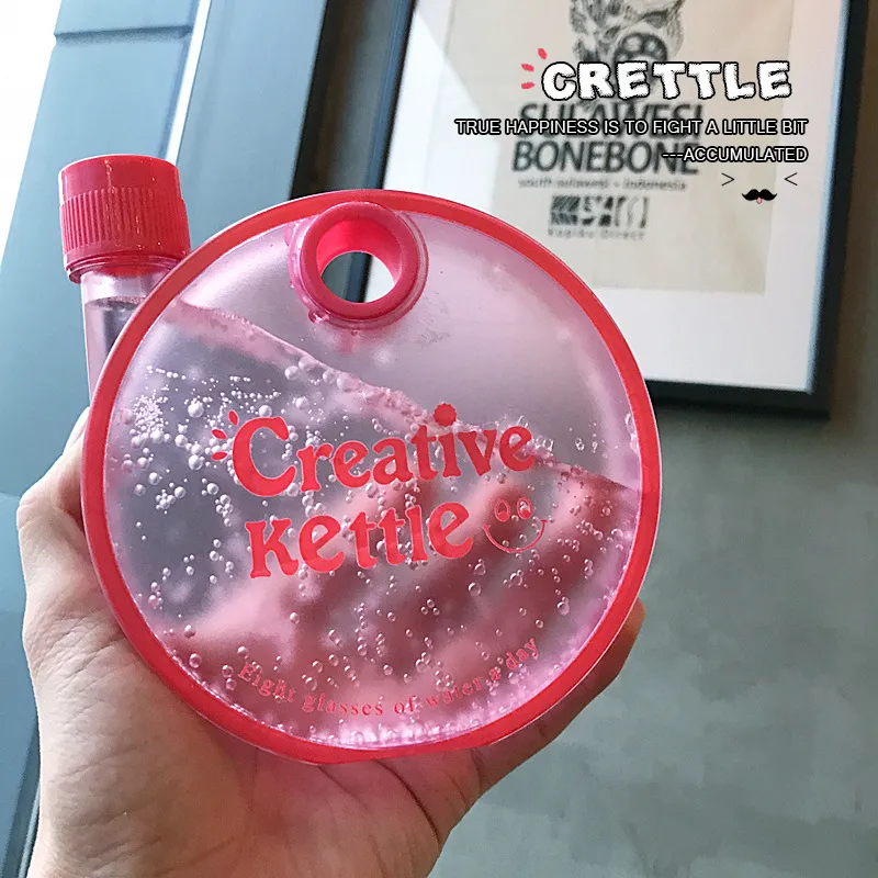 Creative Kettle Water Bottle Creative Round Bottle Drinkware For Outdoor Sport Flat Kettle Plastic Water Bottle Travel