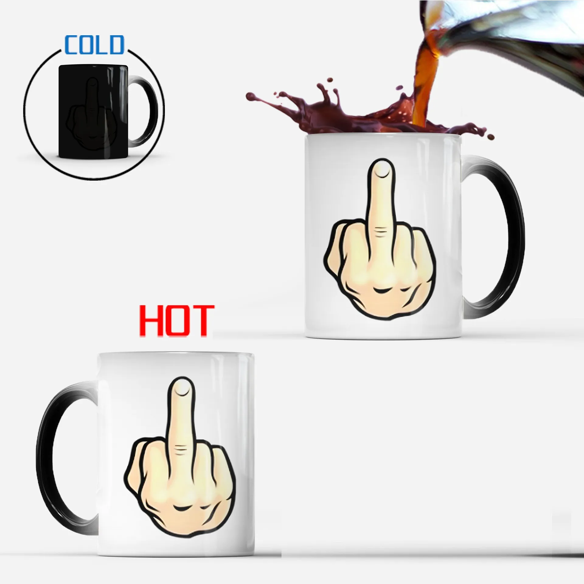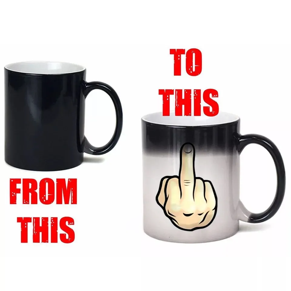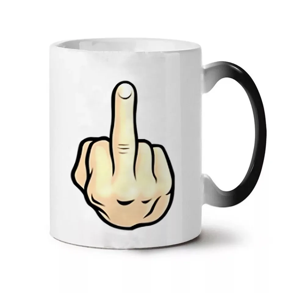 Creative Middle Finger Color Changing Mug Ceramic Thermal Gradient Temperature Sensing