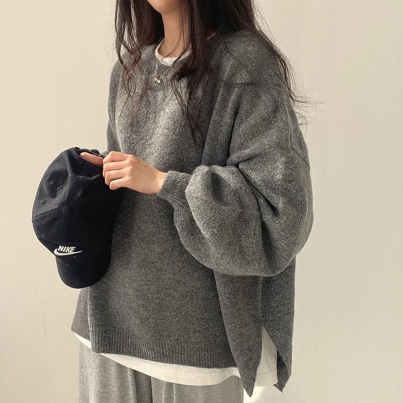 Crewneck Pullover Lantern Sleeve Loose Sweater Woman