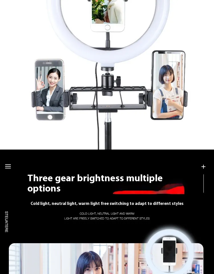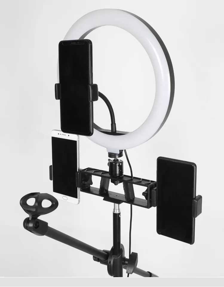 Cross Bar Tray Storage Rack With Microphone Beauty Fill Light Photography Floor Mobile Phone Bracket