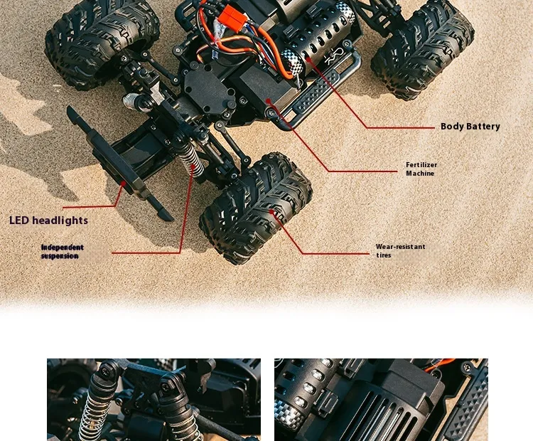 Designed for off-road enthusiasts, this RC car features a robust four-wheel drive (4WD) system that provides exceptional traction and stability. The 4WD setup ensures that the car can tackle a variety of challenging surfaces, from gravel roads and sand dunes to rocky paths and muddy trails. No matter how tough the terrain, the Cross-Border Off-Road Car can handle it all with ease.