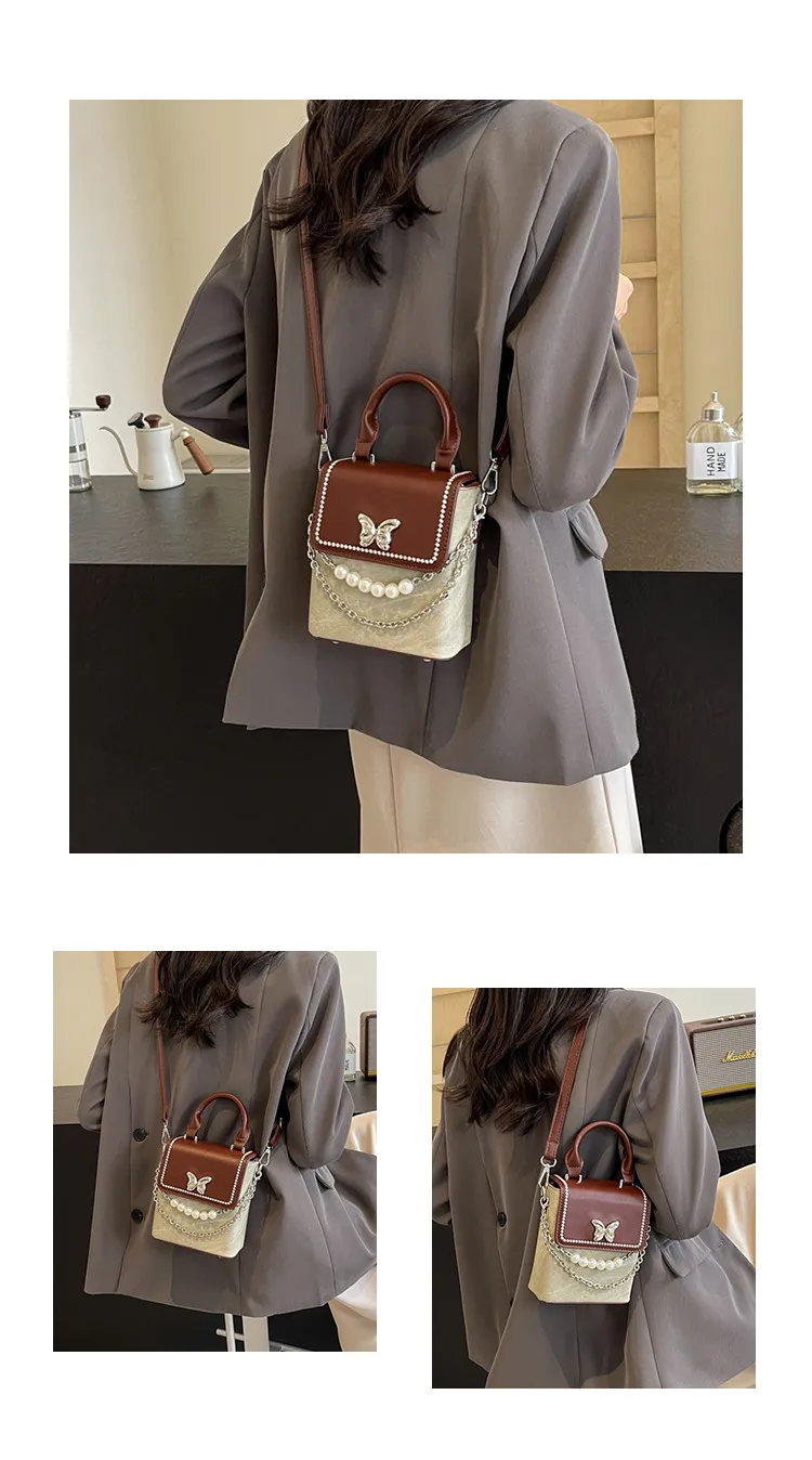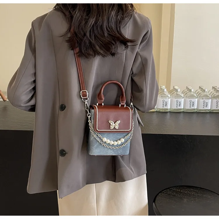 Popular elements: beaded, bow, stitching, printing, contrast color, chain, stitching, lock