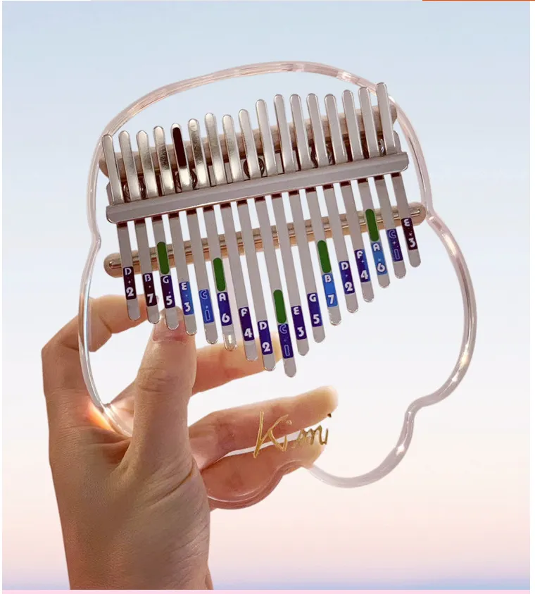 - Crystal-like appearance: The thumb piano’s beautiful transparent body and shimmering keys are designed to resemble precious gemstones, adding a luxurious touch to any décor.
