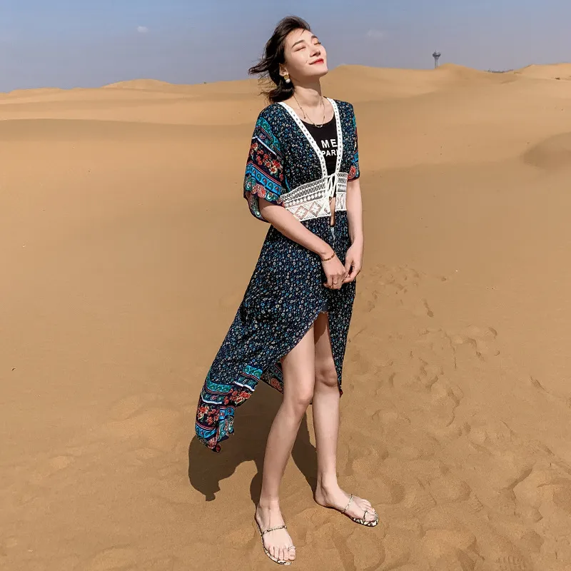CUPSHE Boho Crochet Kimono Cover Up Woman Sexy Short Sleeve