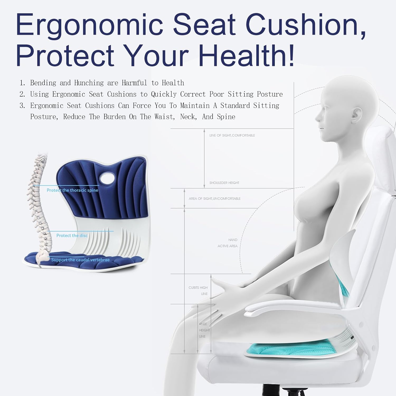 - 2-in-1 Posture Corrector, Multi Scenario Application: The posture correction seat provides both seat cushion and lumbar support functions, and does not require frequent adjustments during use. It is suitable for various chairs, including office chairs, reading chairs, floor chairs, computer chairs, gaming chairs, car seats, desk chairs, school chairs, sofas, sports stands, etc