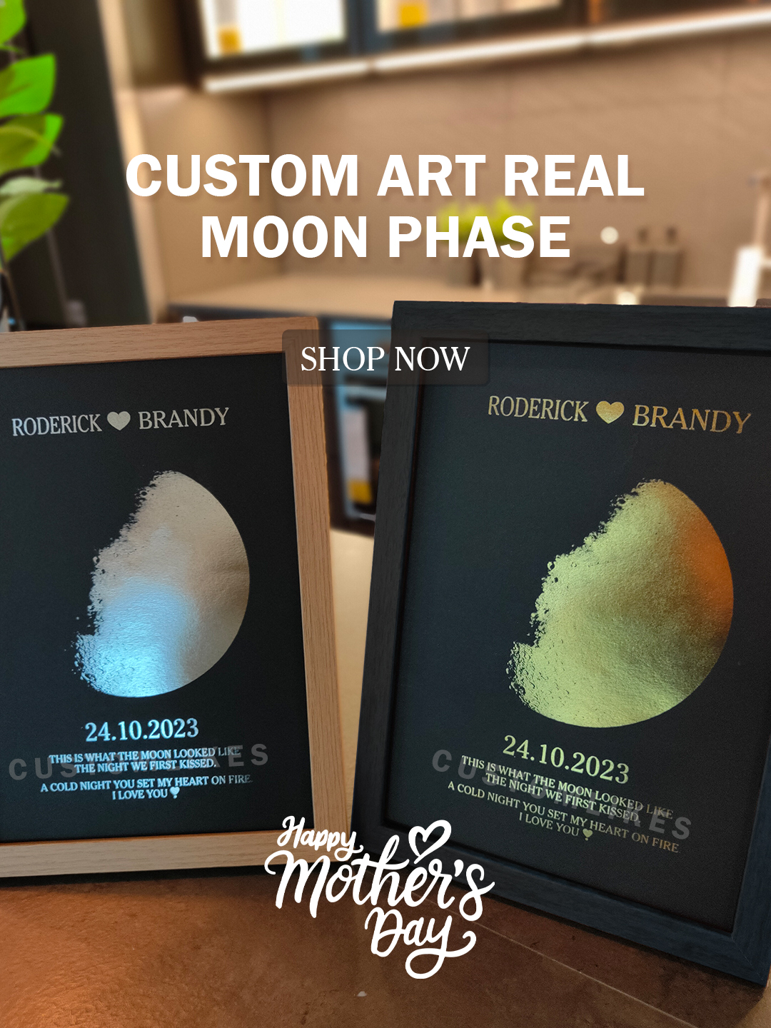 In every extraordinary moment, we use the eternal moon phases to commemorate those heartwarming instances. Celebrate your love with a thoughtful and personalized gift, crafting unique cherished memories for that special night. Custom Art Real Moon Phase displays the precise lunar phase from the night you first met or the day you were born, making it a truly exceptional and emotionally rich present.