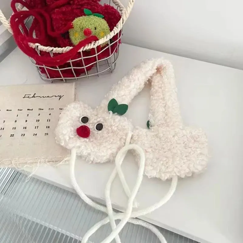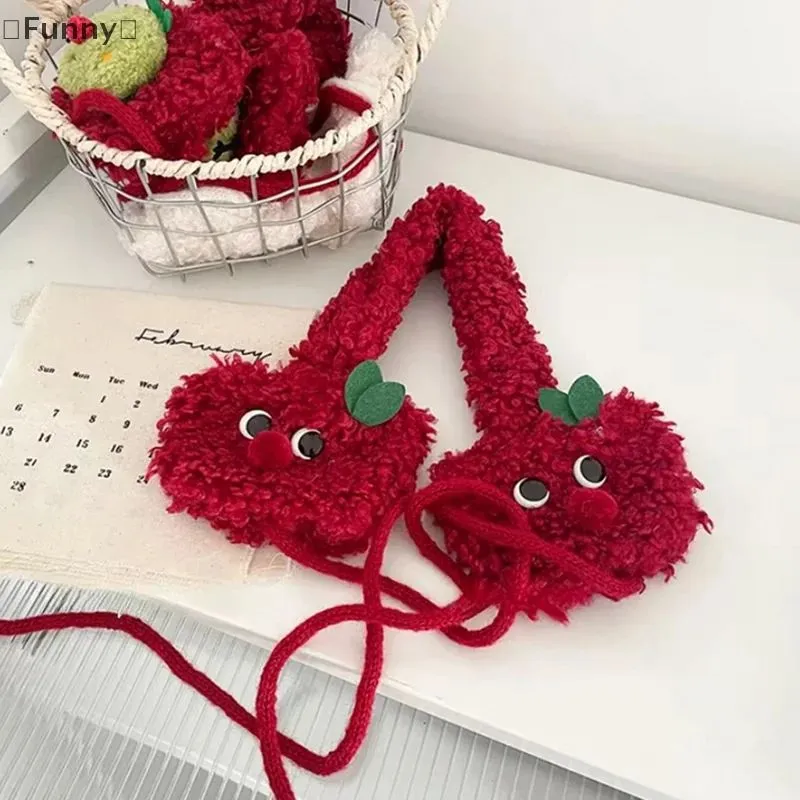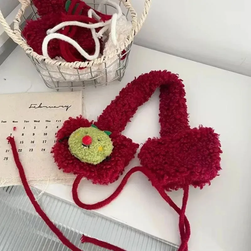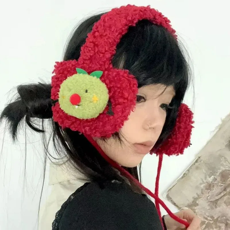Cute Apple Shape Design Red Plush Earmuffs For Women Autumn And Winter Warm Ear Protection Fashion Versatile Straps Hairband
