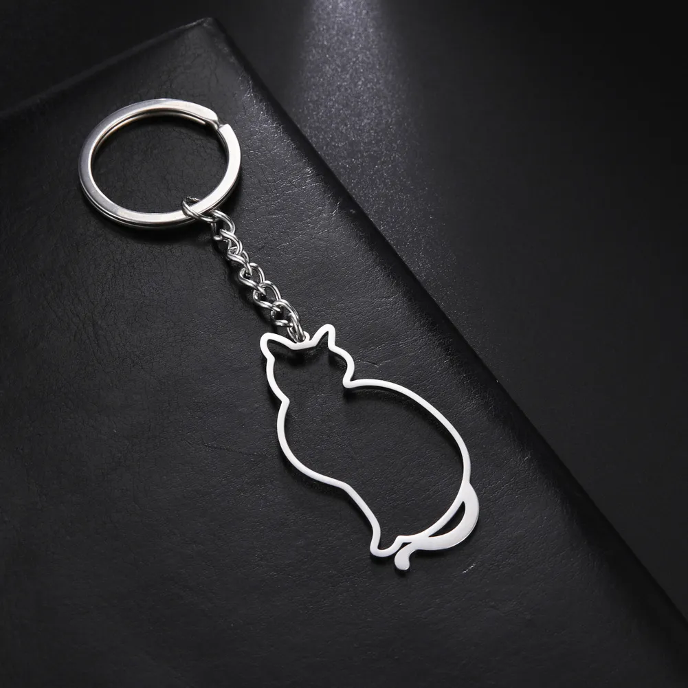 Cute Cartoon Animal Hollow Cat Pendant 304 Material Stainless Steel Key Ring