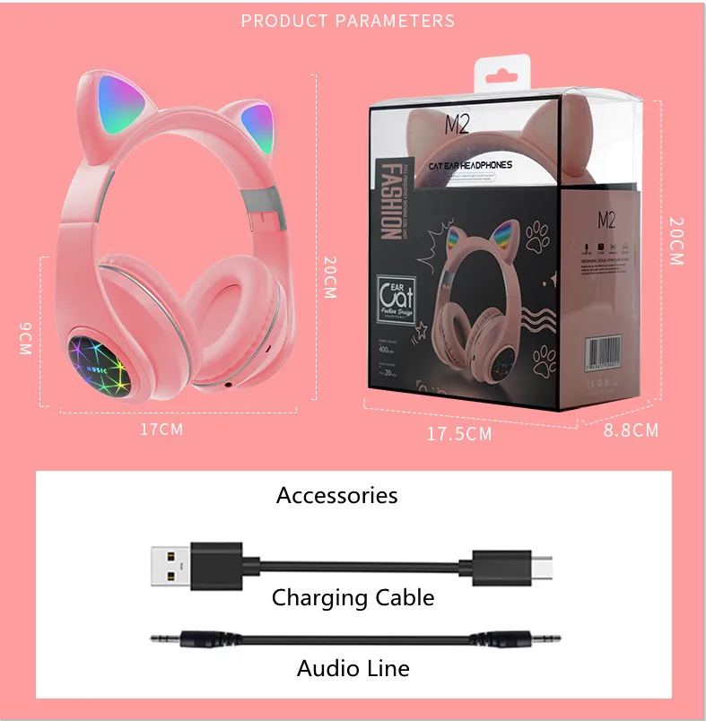 The Cute Cat Ear Bluetooth Headset combines playful design with superior audio quality, offering an immersive listening experience while adding a touch of fun to your style. With its unique cat ear design, this headset is perfect for those who want to make a statement while enjoying high-quality sound. Whether you're gaming, listening to music, or watching movies, the Cute Cat Ear Bluetooth Headset ensures comfort, clear sound, and an enjoyable experience. Ideal for both kids and adults who love fun and functionality, this headset is a must-have for your audio needs.