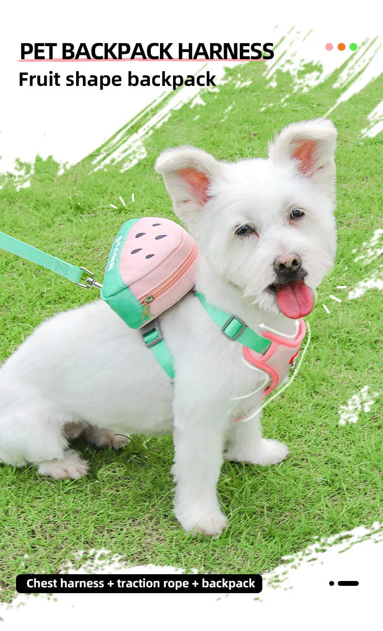 Cute Fruit Backpack Pet Chest Strap Set Anti Slip Soft Breathable Pet Chest Strap Traction Rope Dog Cat Pet Backpack Chest Strap