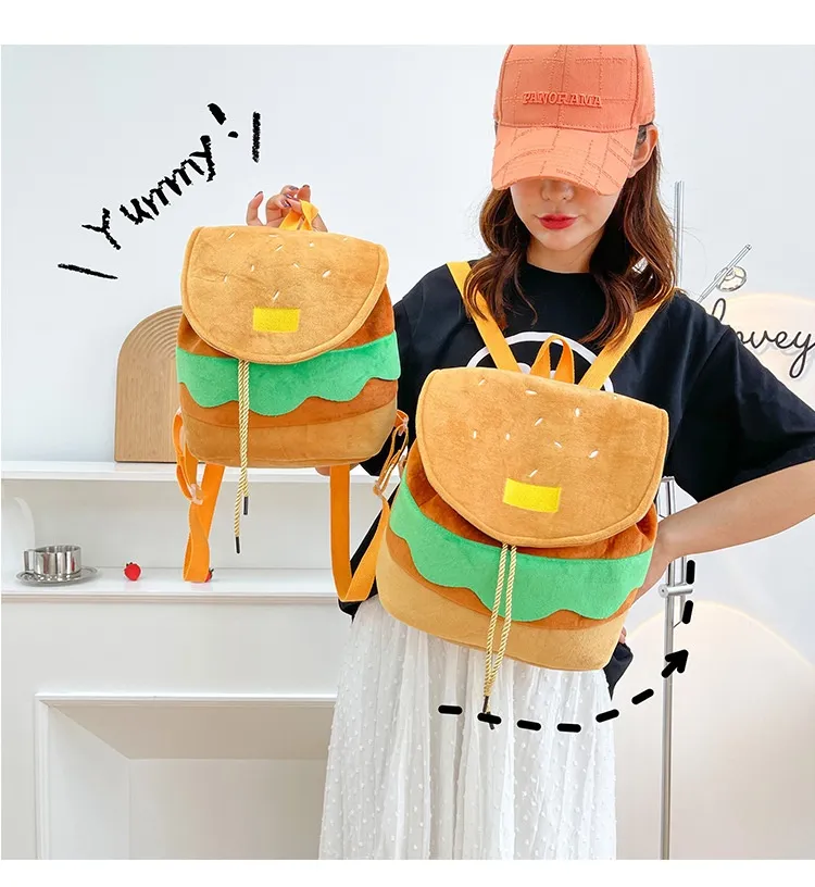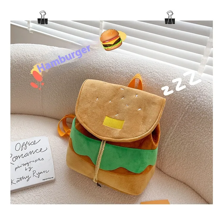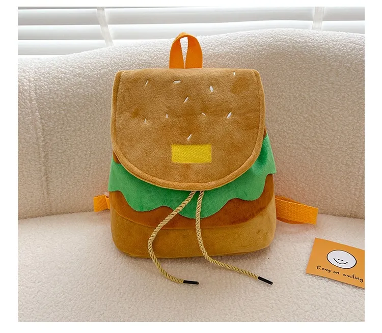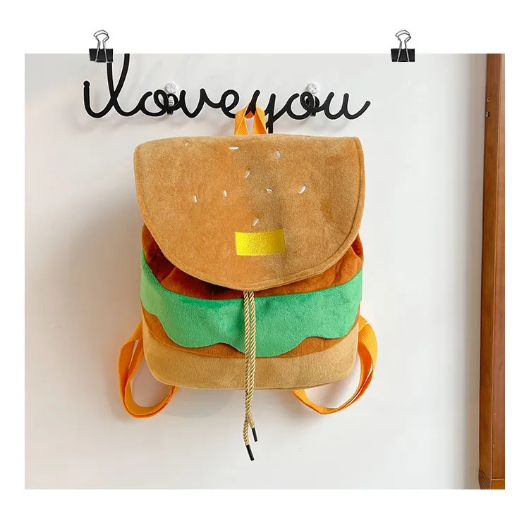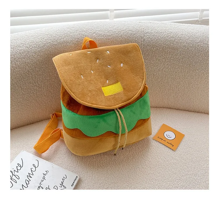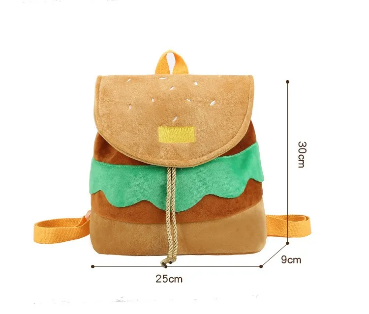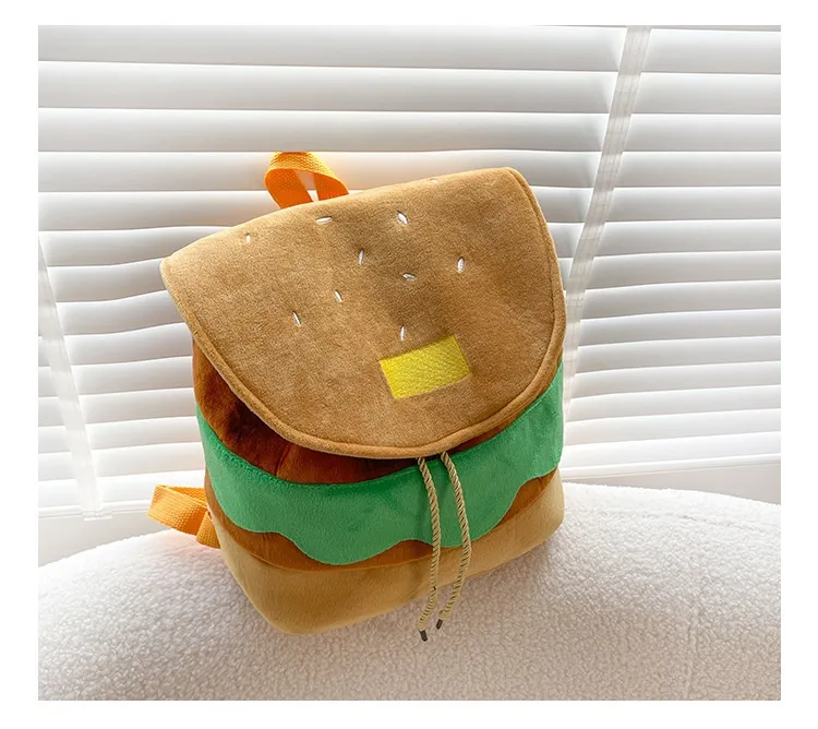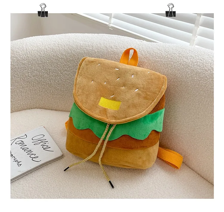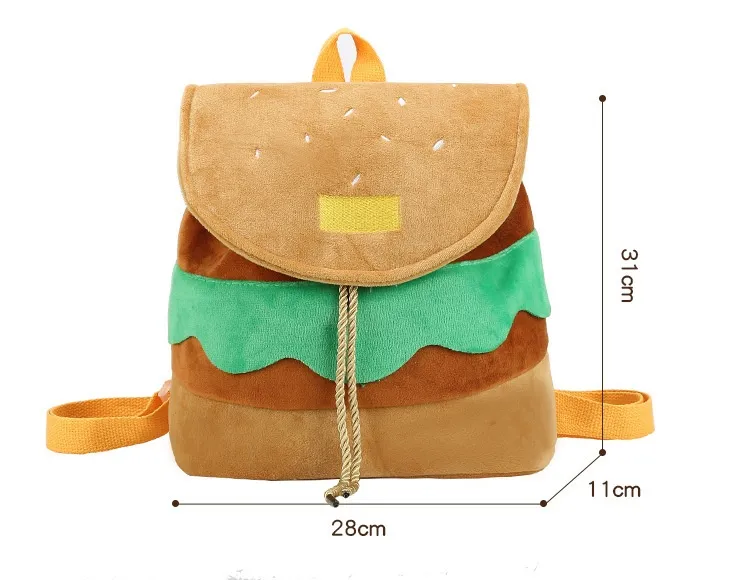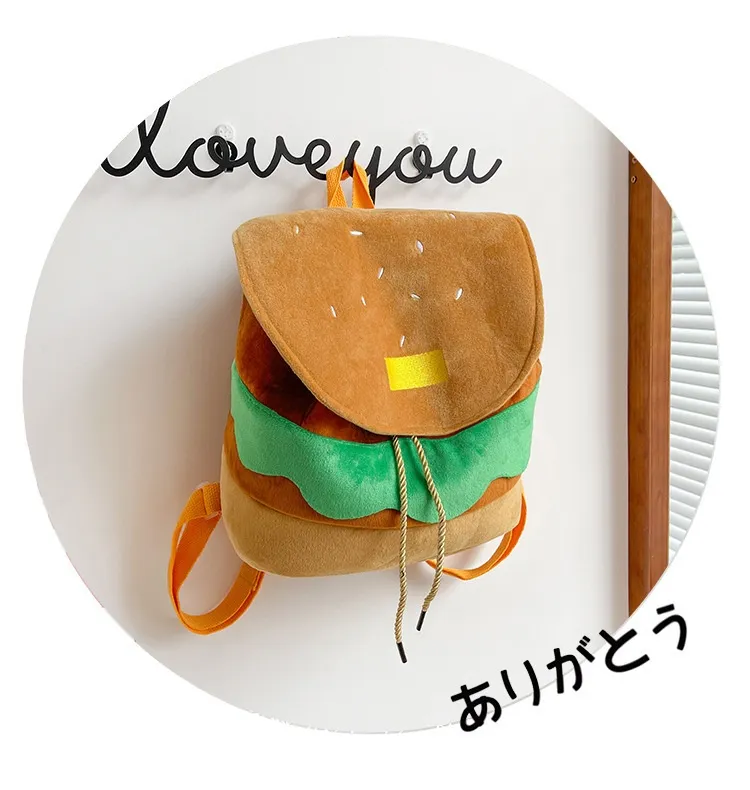Cute Hamburger Plush Backpack Soft Cartoon Burger Plush Coin Purse Girls Kindergarten School Bookbag Children Kids Pack