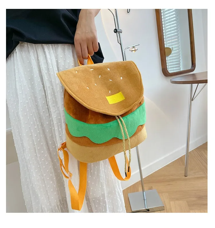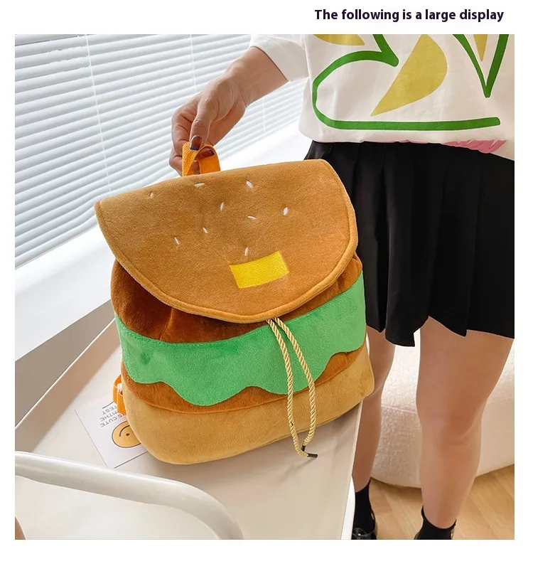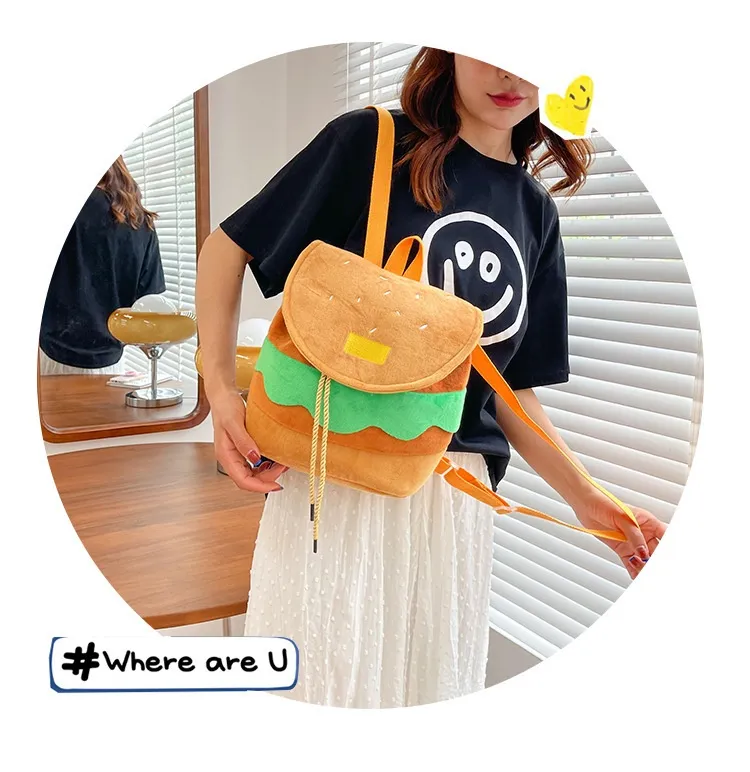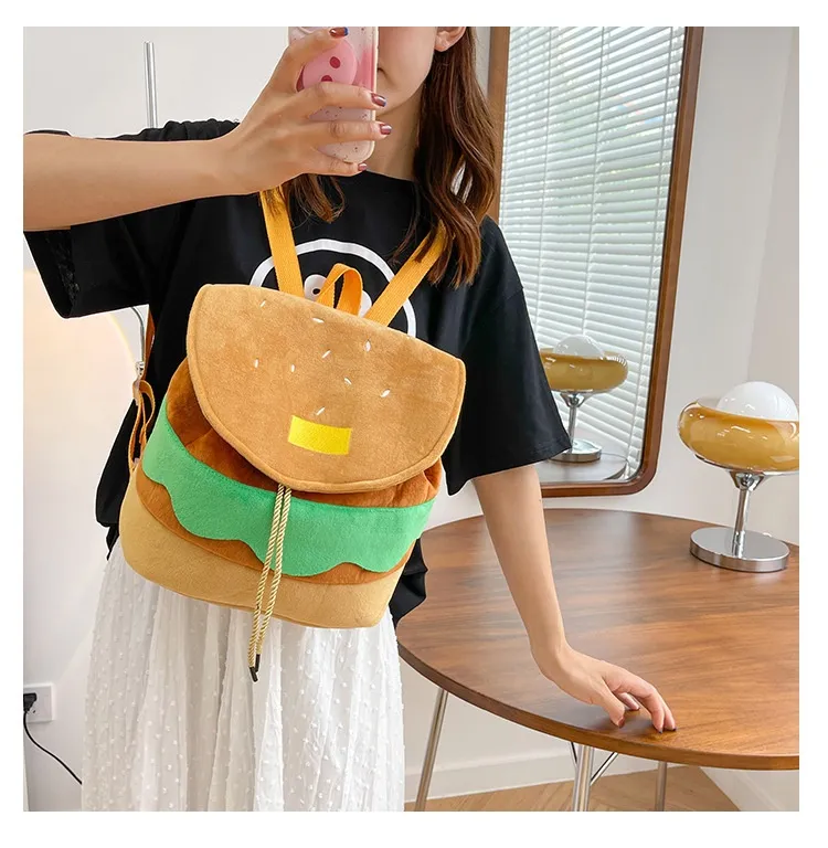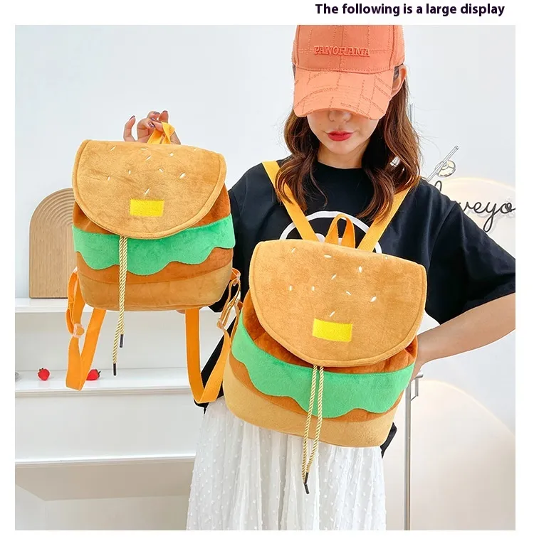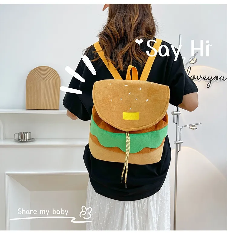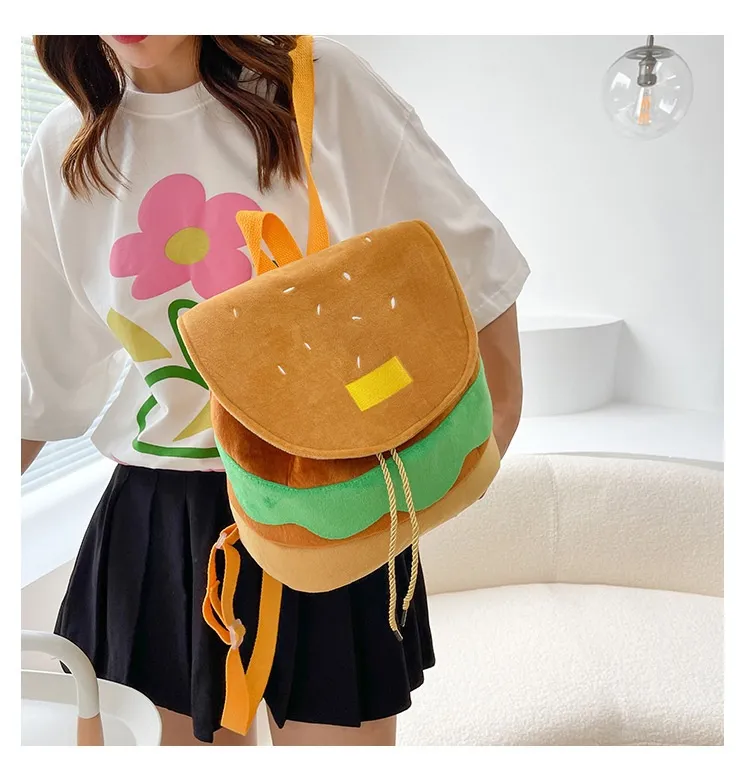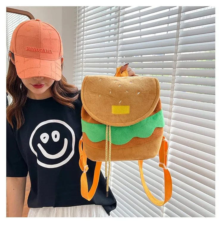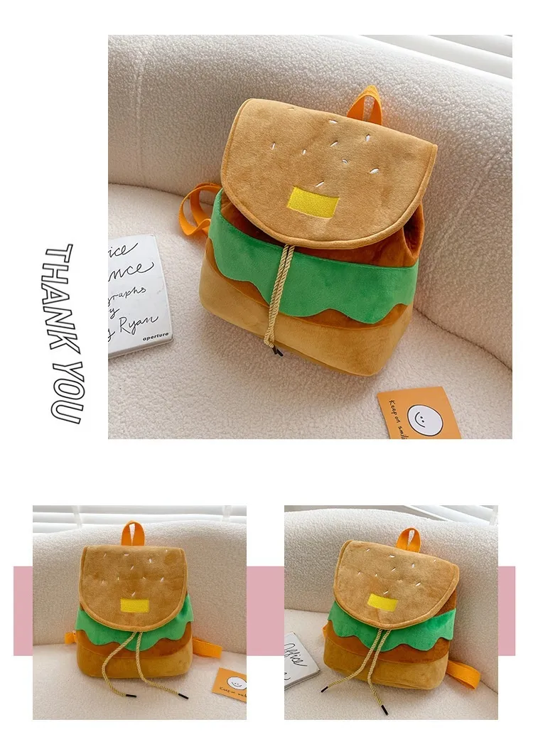 Cute Hamburger Plush Backpack Soft Cartoon Burger Plush Coin Purse Girls Kindergarten School Bookbag Children Kids Pack