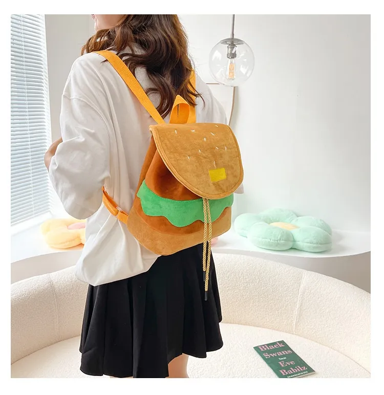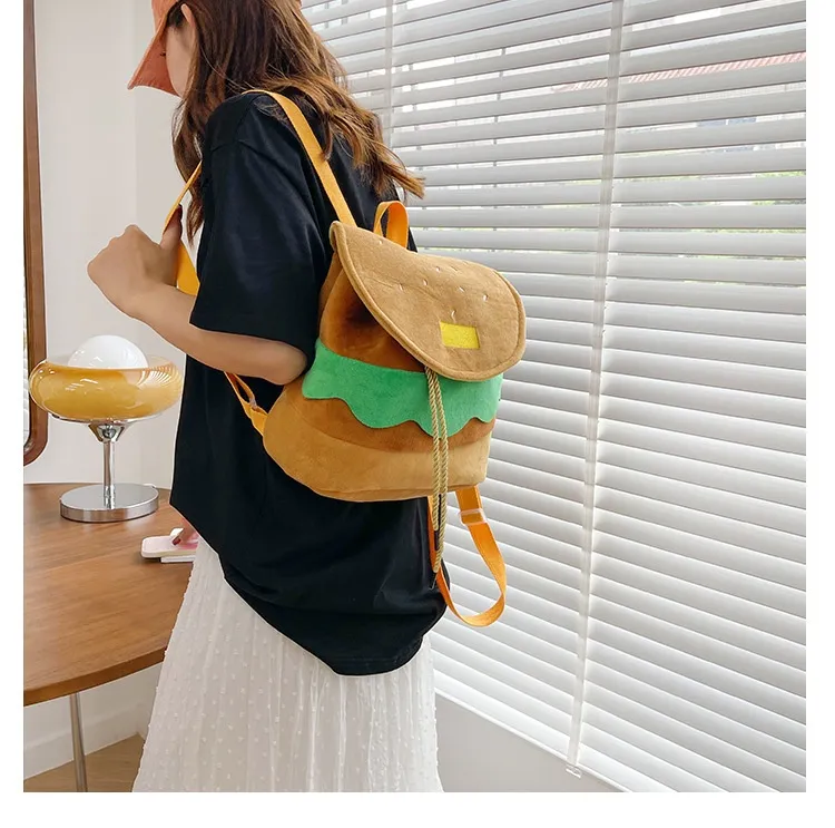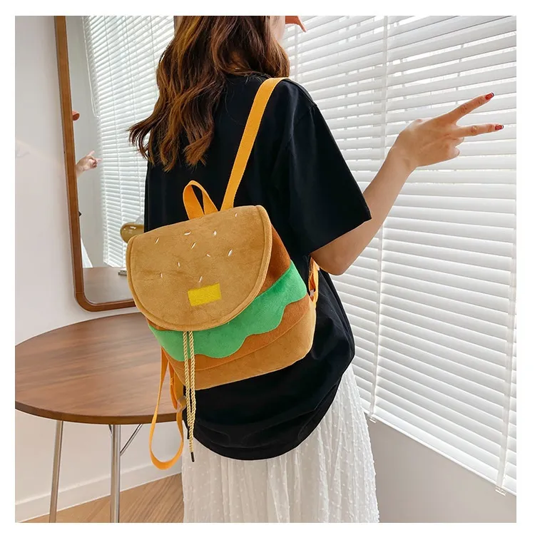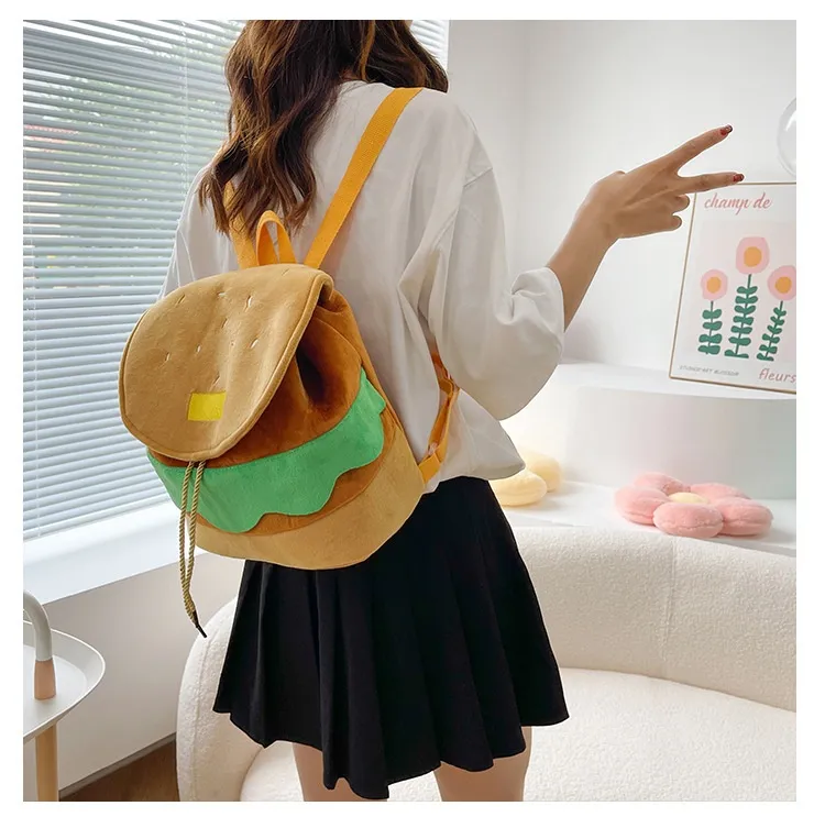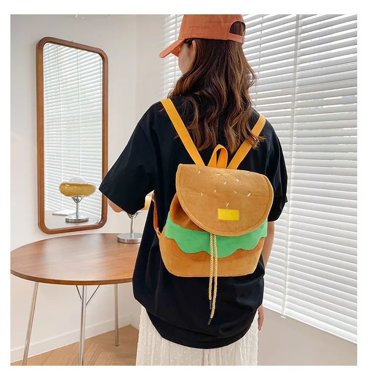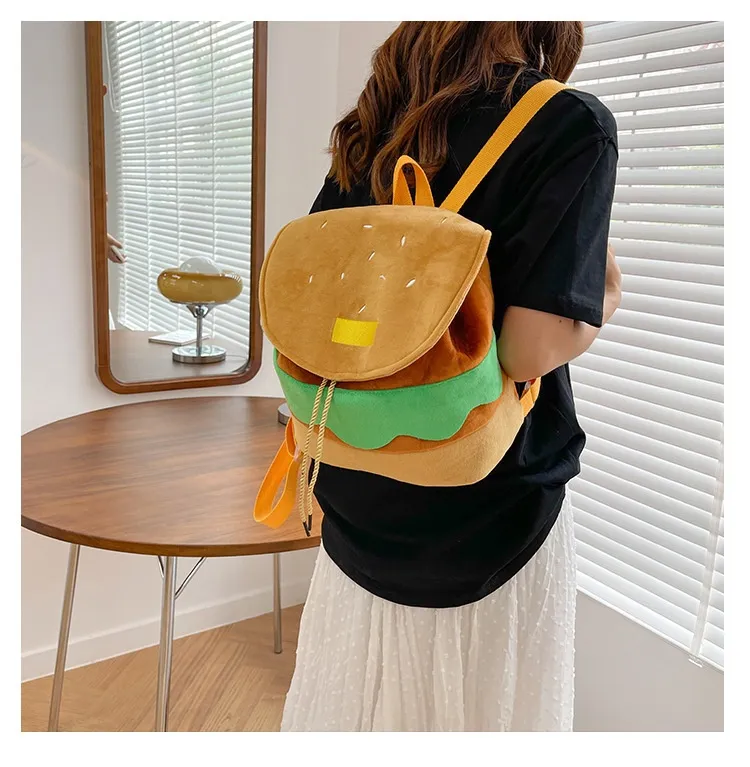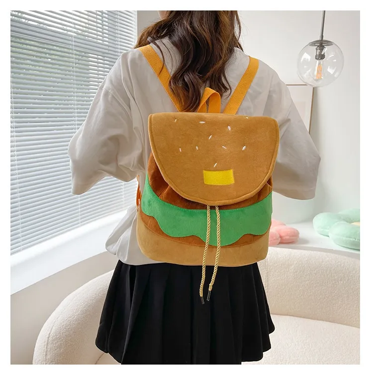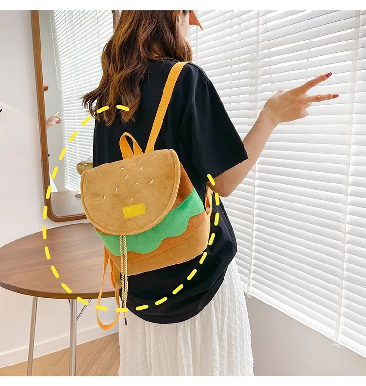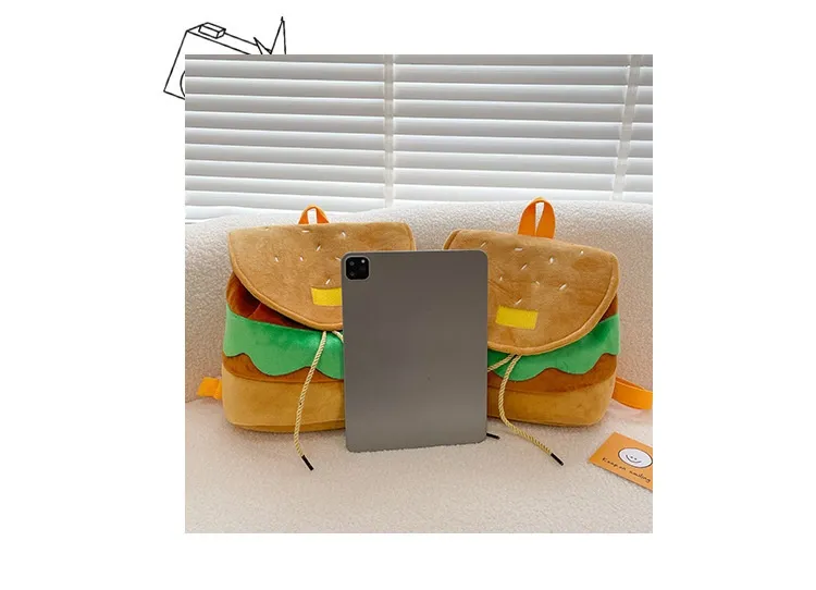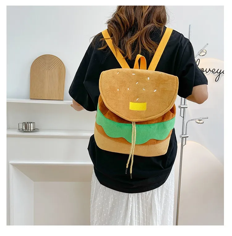 Cute Hamburger Plush Backpack Soft Cartoon Burger Plush Coin Purse Girls Kindergarten School Bookbag Children Kids Pack