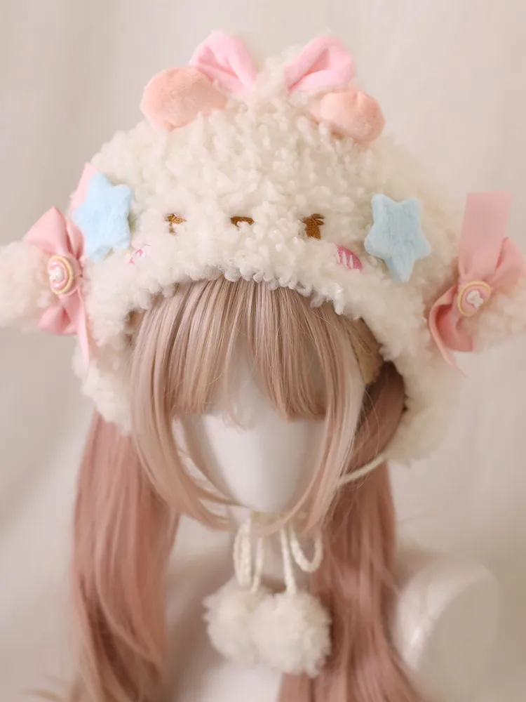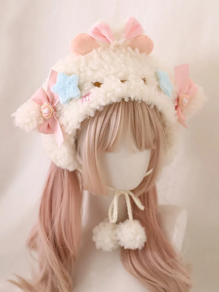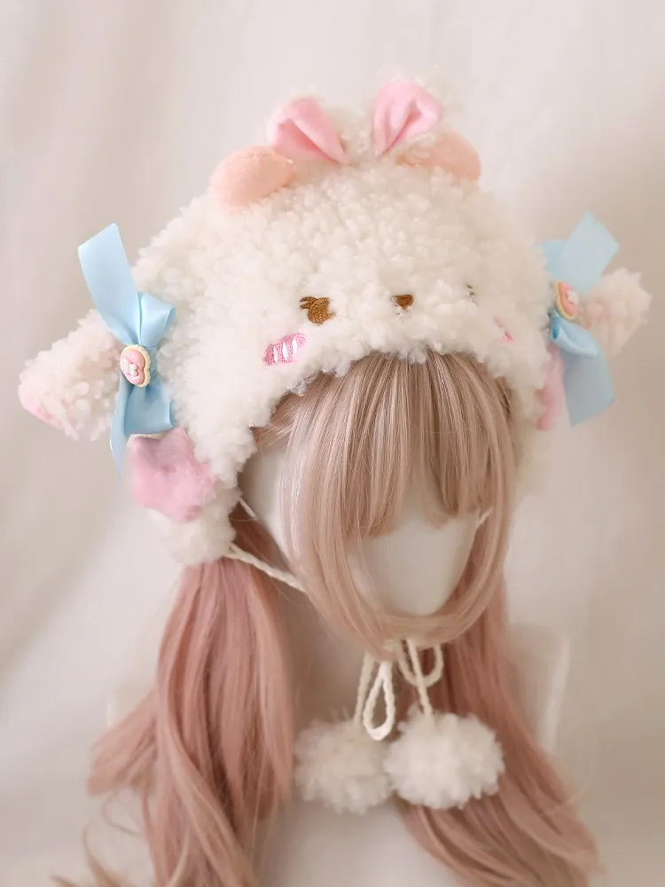 Cute Lamb Ears Earmuffs Hat Lambswool Bucket Hat