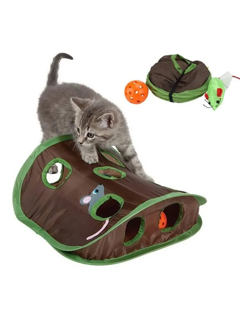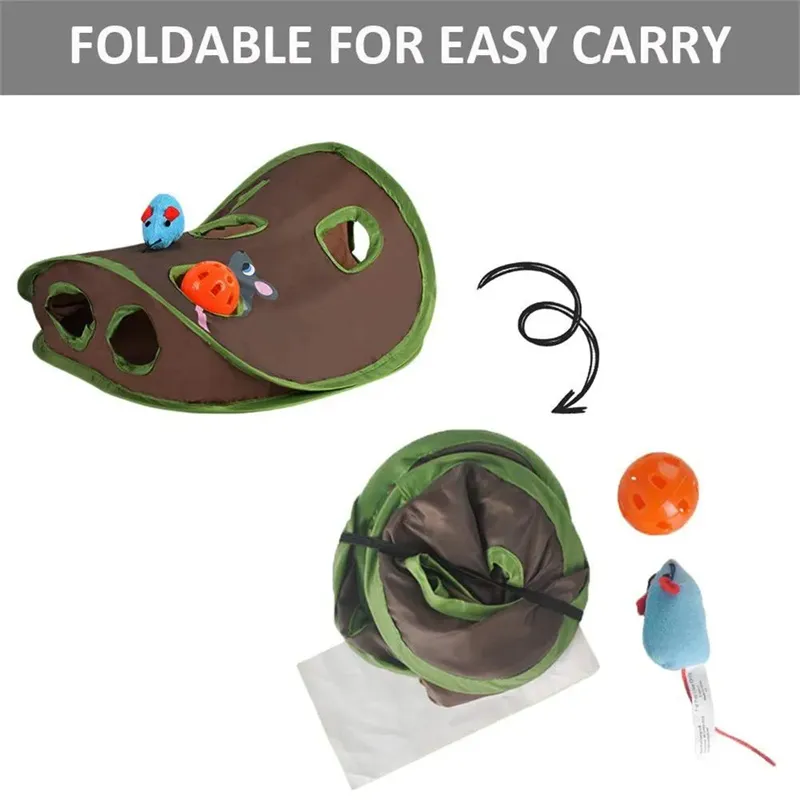 Cute Pet Cat Interactive Hide Seek Game 9 Holes Tunnel Mouse Hunt Intelligence Toy Pet Hidden Hole Kitten Foldable Toys
