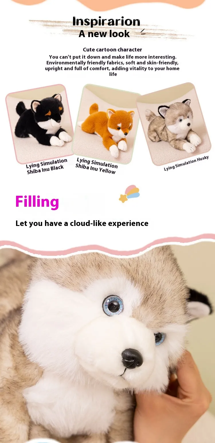 Color: lying posture simulation Chai BA Inu Brown, lying posture simulation Chai BA Inu Black, lying posture simulation Husky