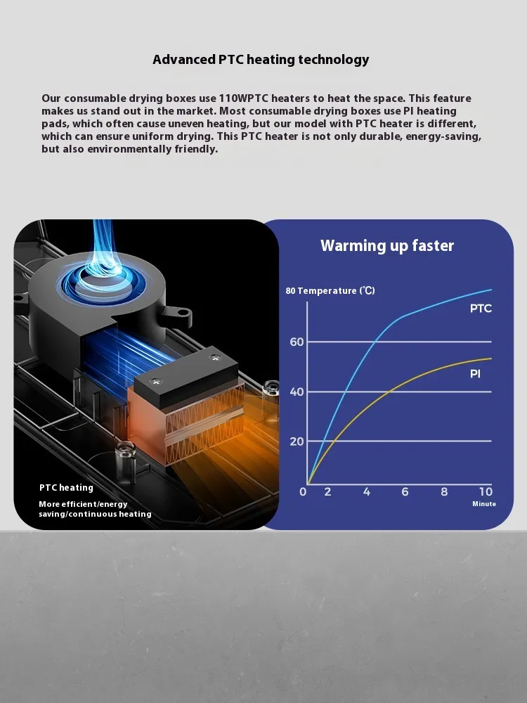 The CX 3D Printer Drying Box is crafted with high-quality materials and advanced technology, ensuring reliable performance and durability.