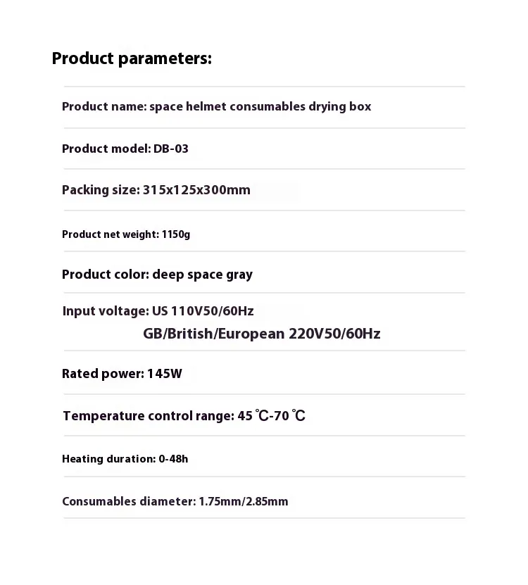 With adjustable temperature settings, the drying box is suitable for a variety of filaments, including PLA, ABS, PETG, TPU, and more, making it a versatile addition to your 3D printing setup.