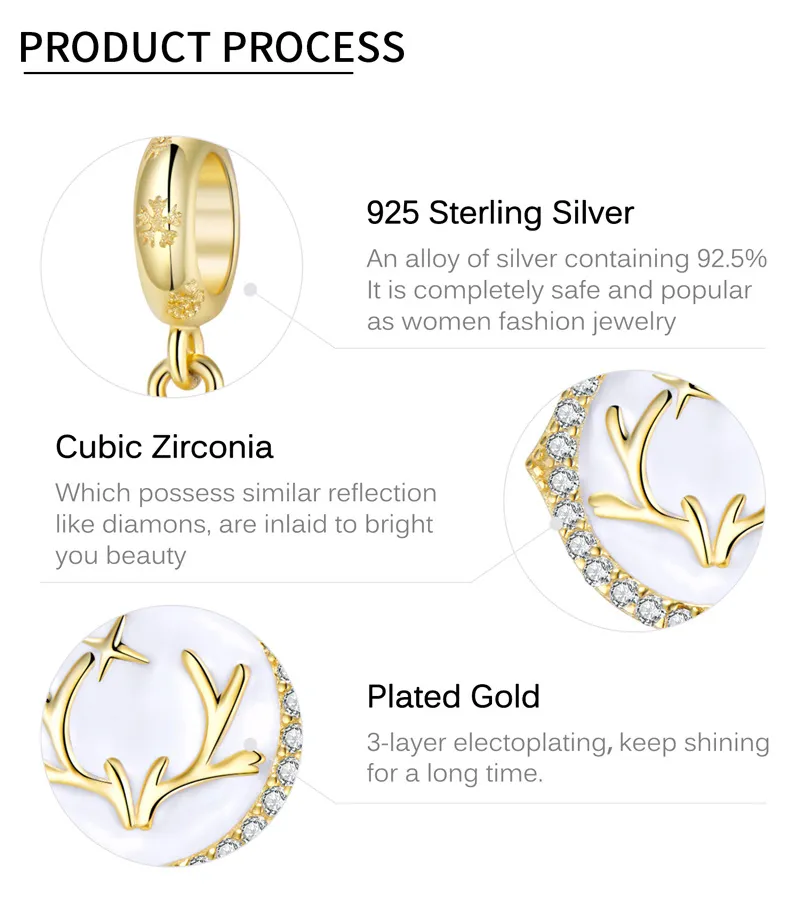 Deer Horn Crown Pendant Christmas Series 925 Silver Gilded Necklace Bracelet Diy Pendant