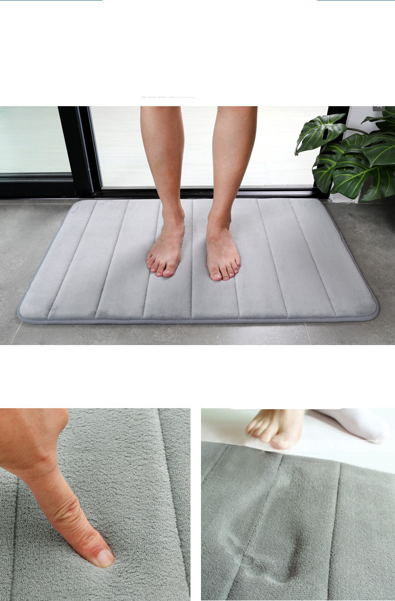 Crafted with the finest materials, our bathroom mat features sumptuously soft coral fleece that caresses your feet with every touch. Sink into the plushness of memory foam cushioning, offering exceptional support and relief to tired feet after a long day.