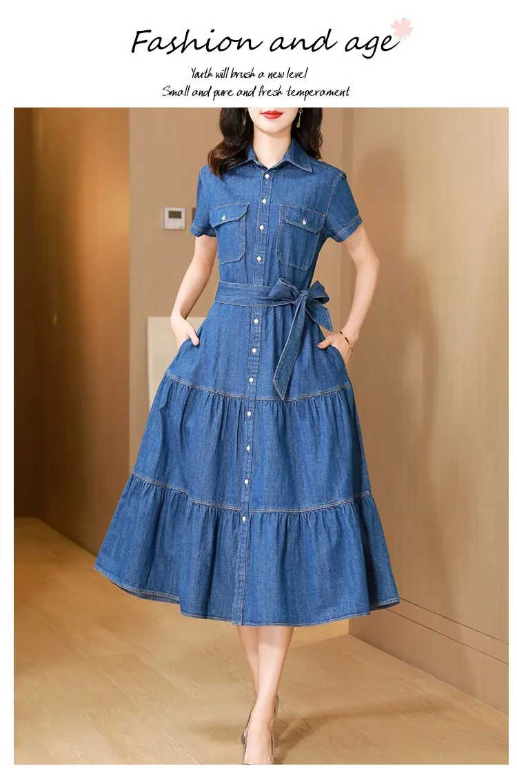 The denim shirt dress is perfect for any season. During the warmer months, it can be worn on its own with sandals for a relaxed, effortless look. As the weather cools down, simply layer it with tights, boots, or a jacket to continue wearing it through autumn and winter. Its versatility makes it a year-round essential in your closet.
