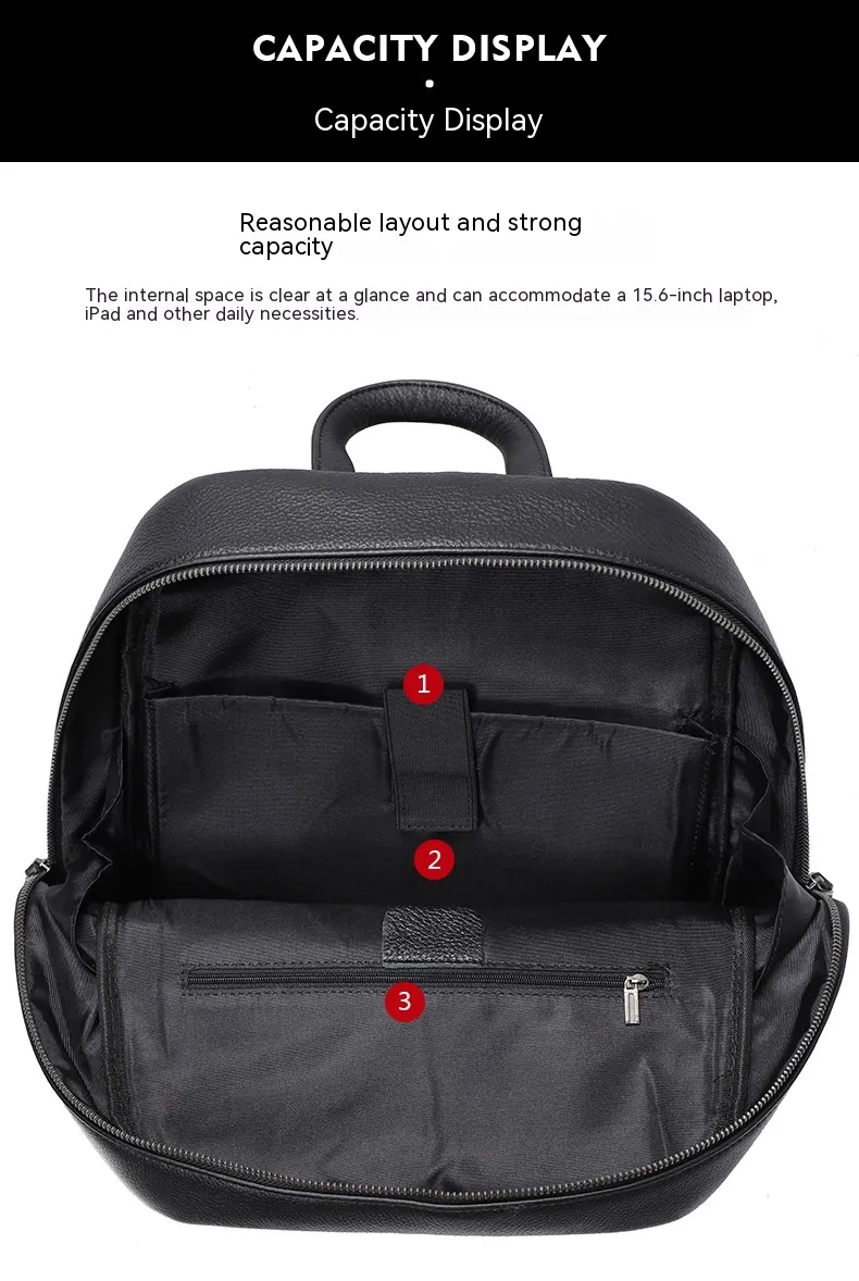 Made from premium cowhide leather, this backpack is built to last, ensuring years of use while maintaining its polished look.