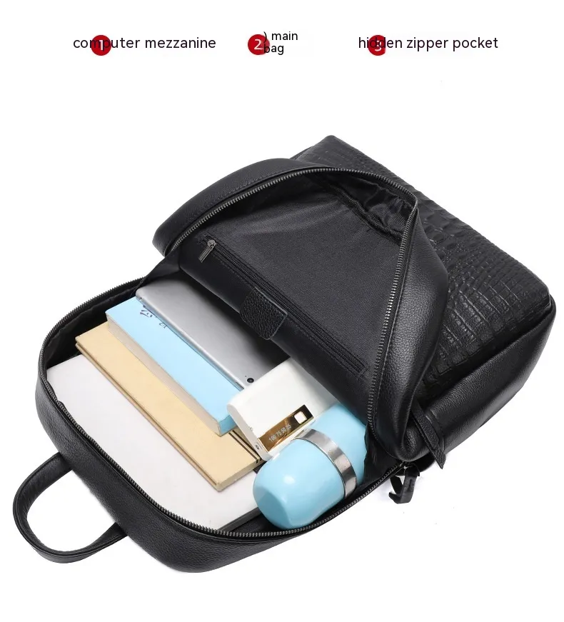 Dermal Leather Men's Backpack First Layer Cowhide Backpack Casual Travel Bag