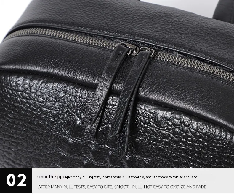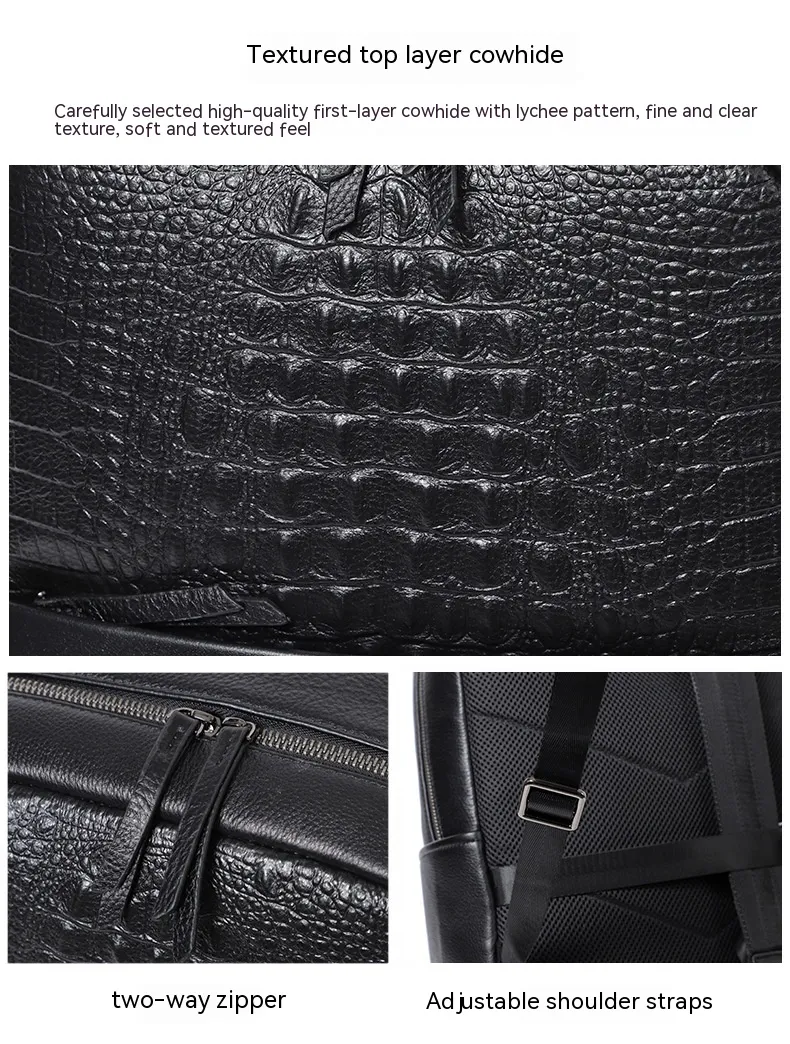 Crafted from high-grade first-layer cowhide, this backpack boasts a soft yet sturdy texture that ages beautifully over time. The natural