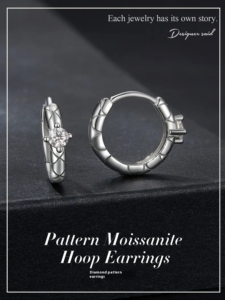Diamond Plaid Ear Clip S925 Sterling Silver