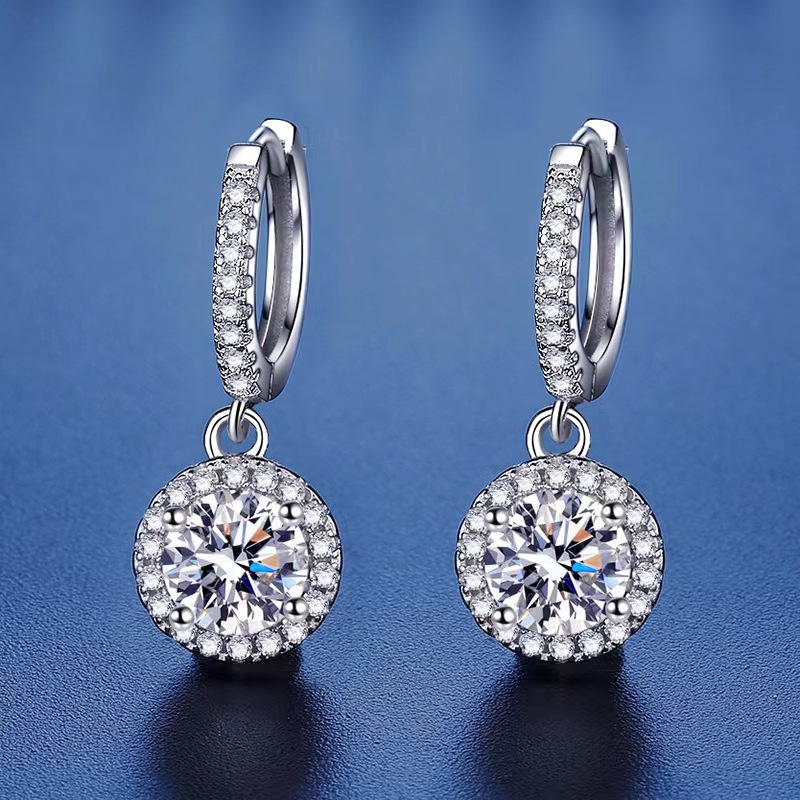 Diamond S925 Sterling Silver Round Bag Earrings