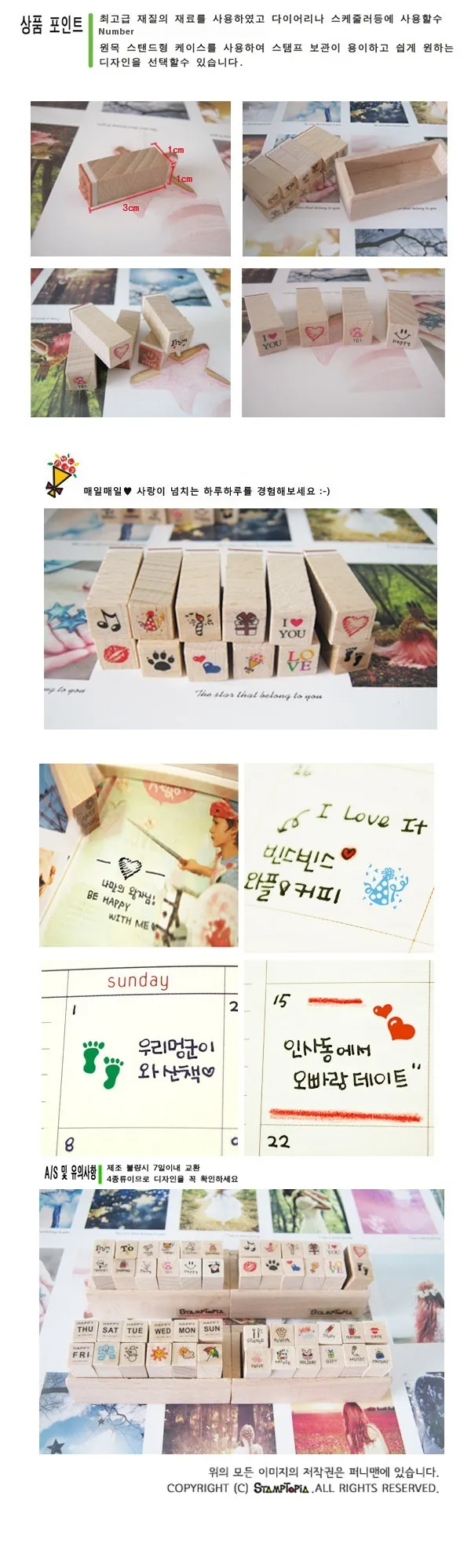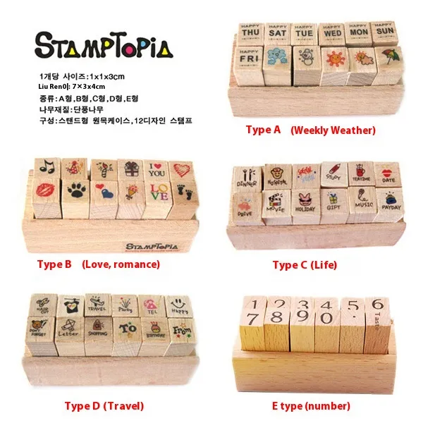 Diary Decoration Wooden Seal Set with Wooden Box: 5 Options for Creative Journaling