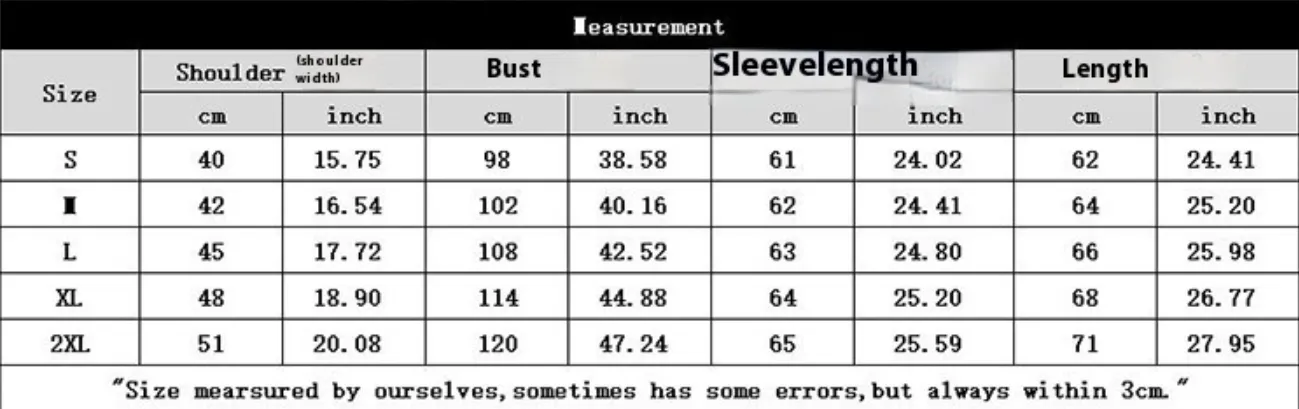 allow 2-3cm differences due to manual measurement.
