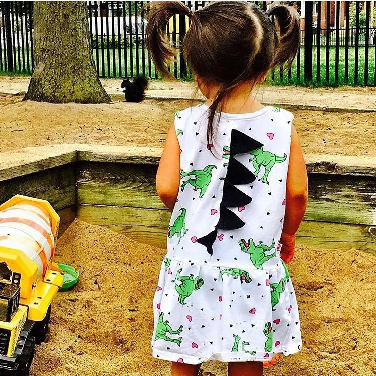 Vibrant Dinosaur Print: The standout feature of this dress is its bold and fun dinosaur print. Featuring a variety of