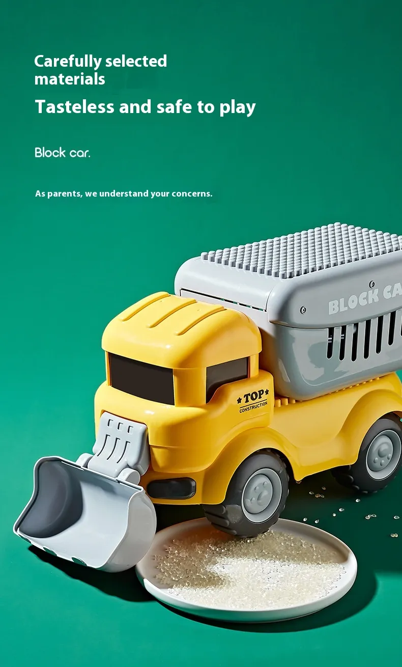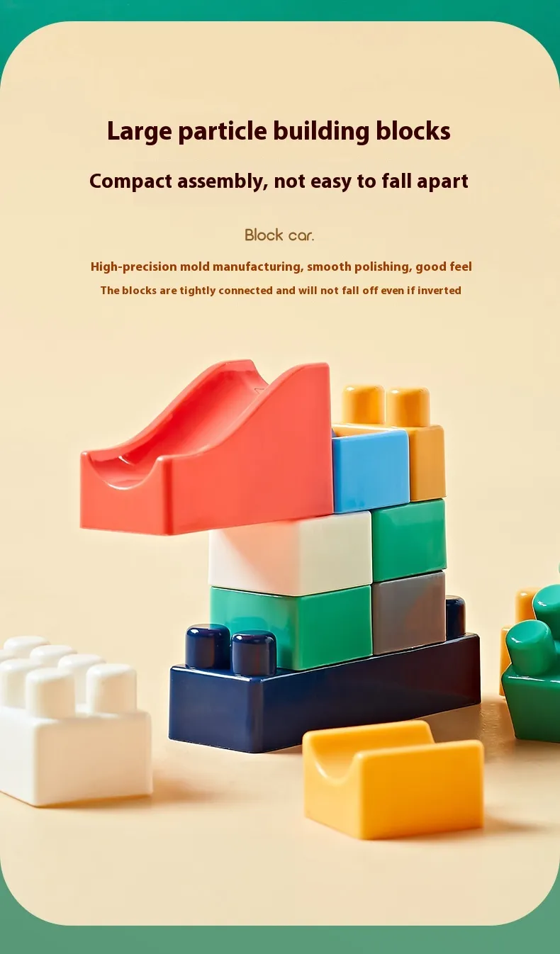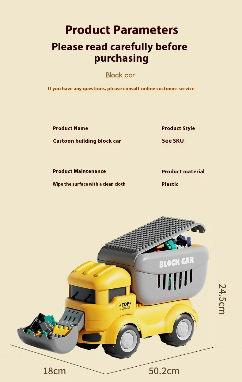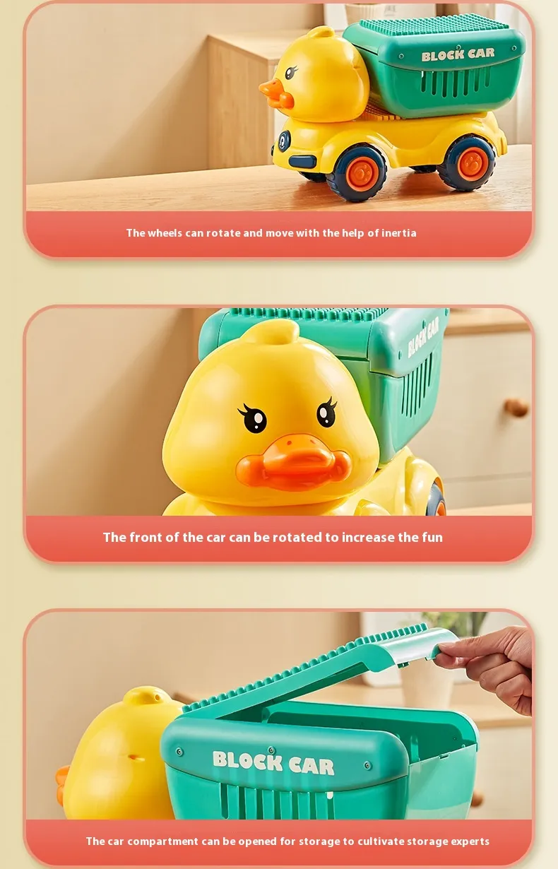 Color: Dinosaur unit block on wheels, cute duck unit block on wheels, shovel unit block on wheels, pressure Road unit block on wheels