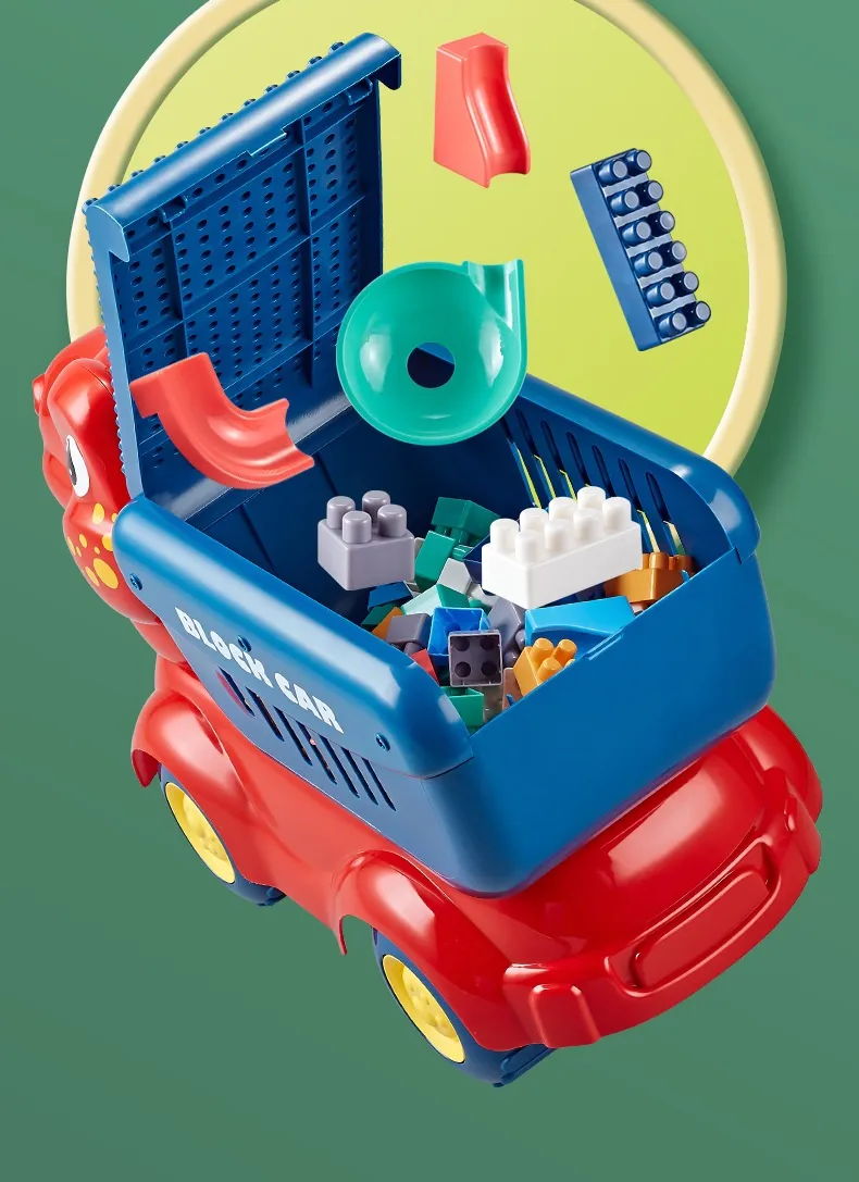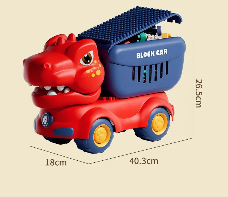 Dinosaur Unit Blocks On Wheels Children's Puzzle Large Particle Assembly Multi-function